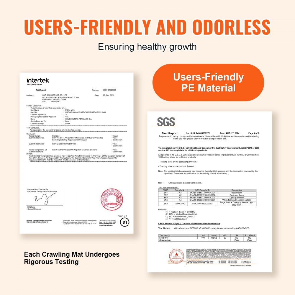 Deze kinderschuimtegels zijn gemaakt van PE met een hoge dichtheid en bieden uitstekende demping om de ledematen van uw kind te beschermen.
