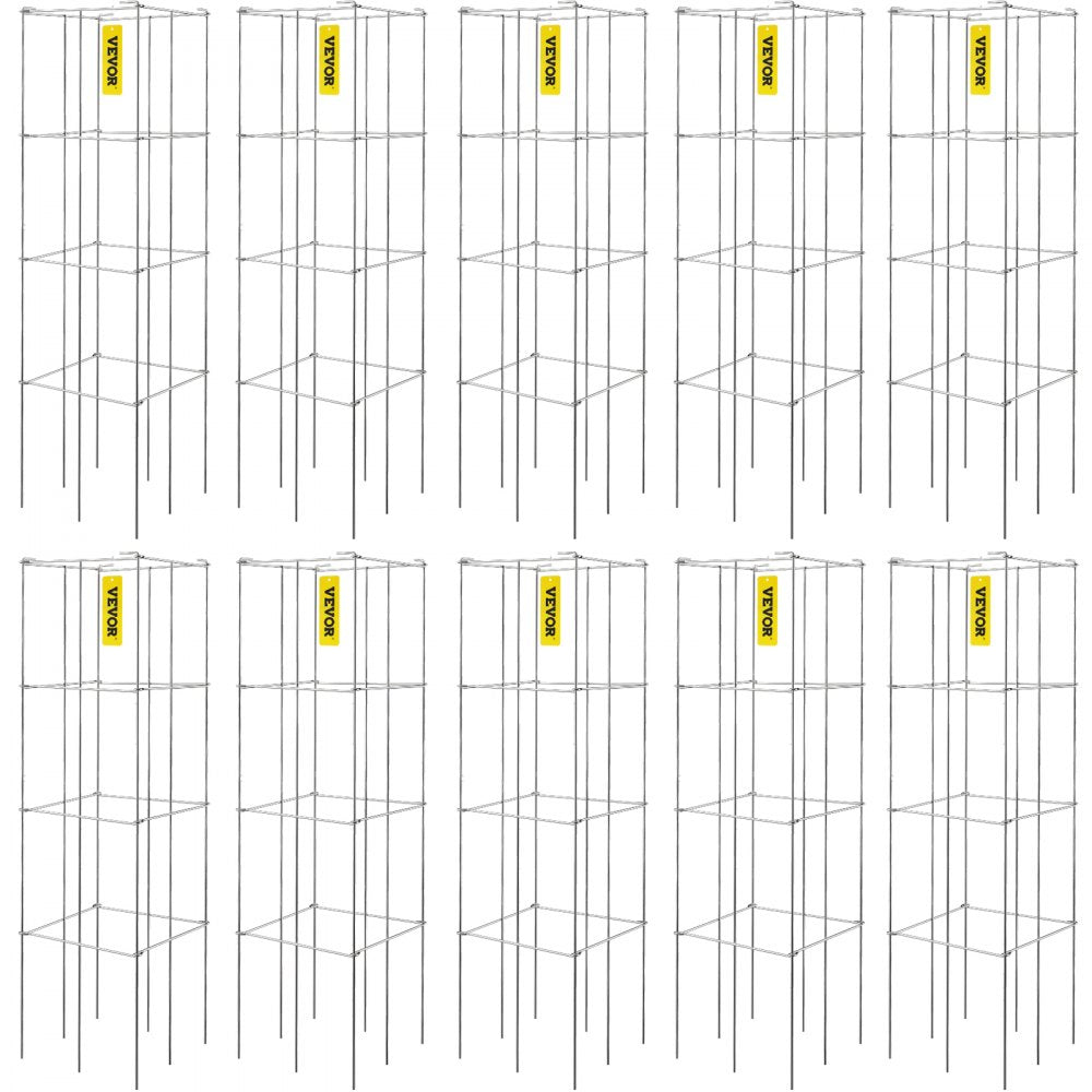 VEVOR tomatenkooien, 30 x 30 x 117 cm, set van 10 vierkante plantensteunkooien, zware tomatentorens van zilver PVC gecoat staal voor het klimmen van groenten, planten, bloemen en fruit