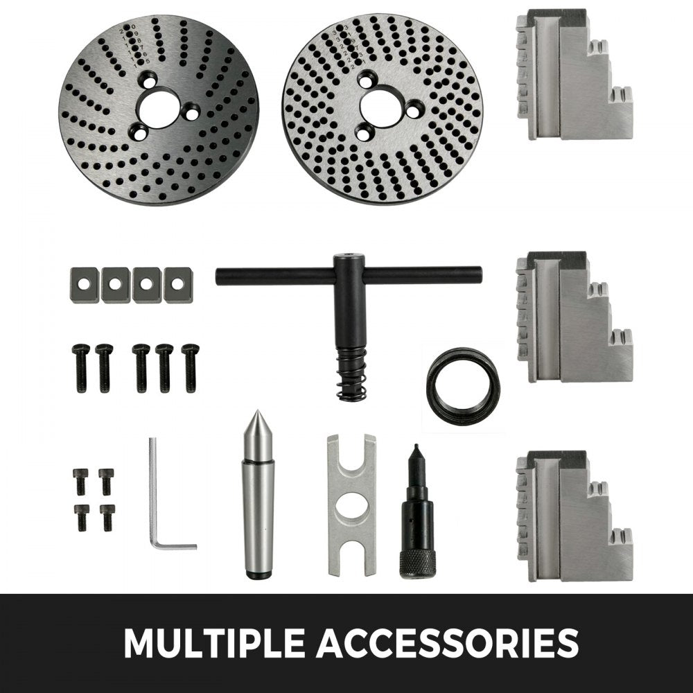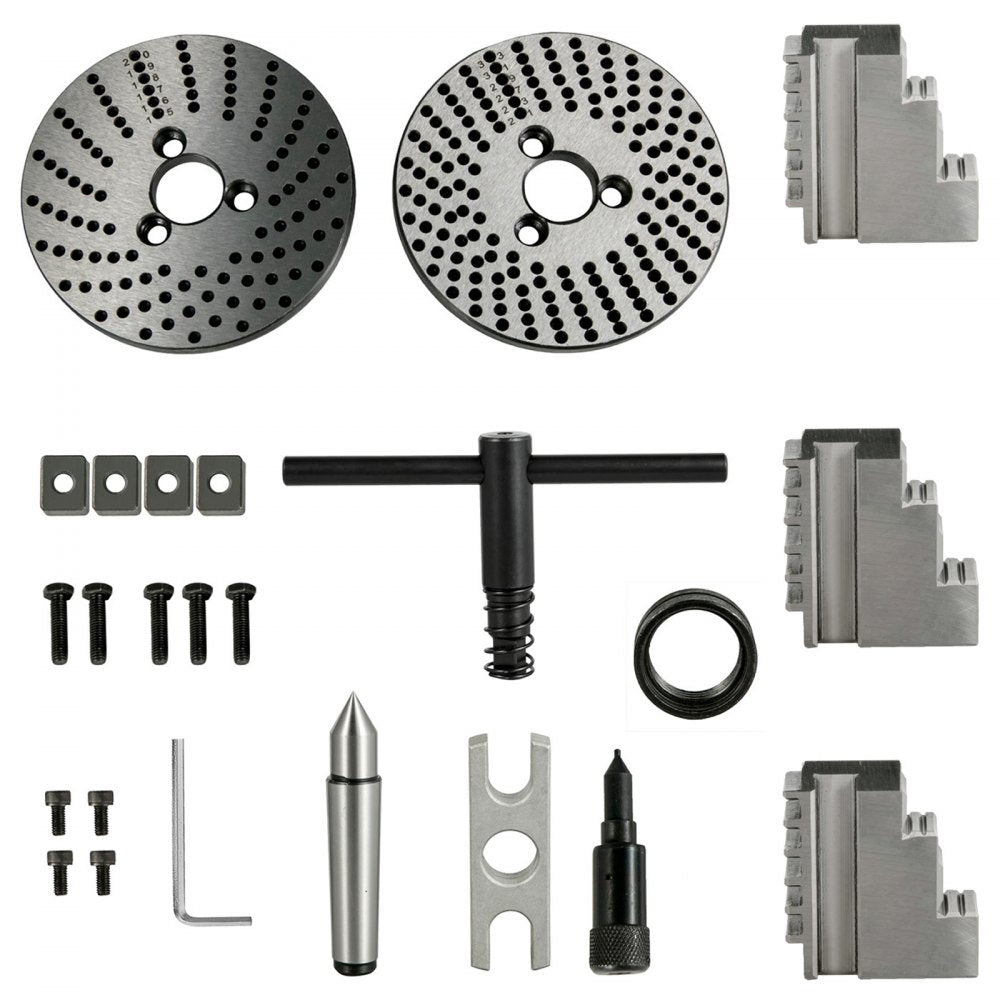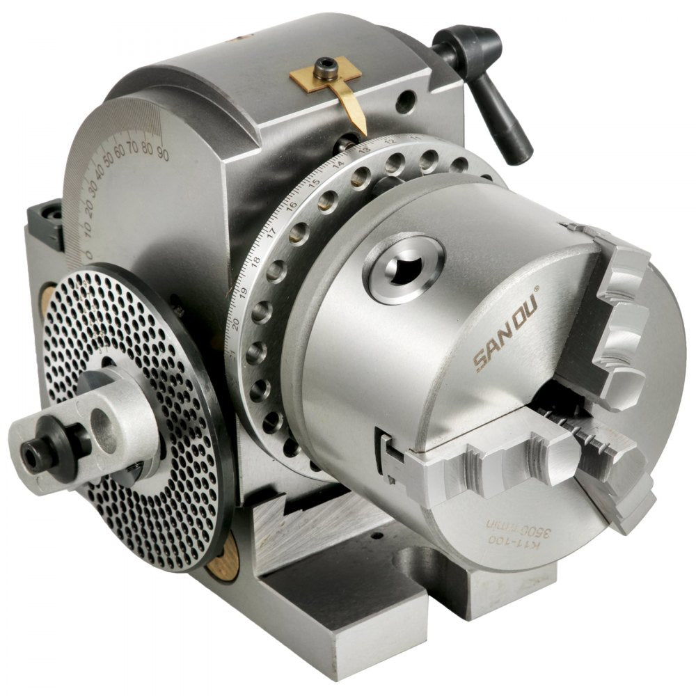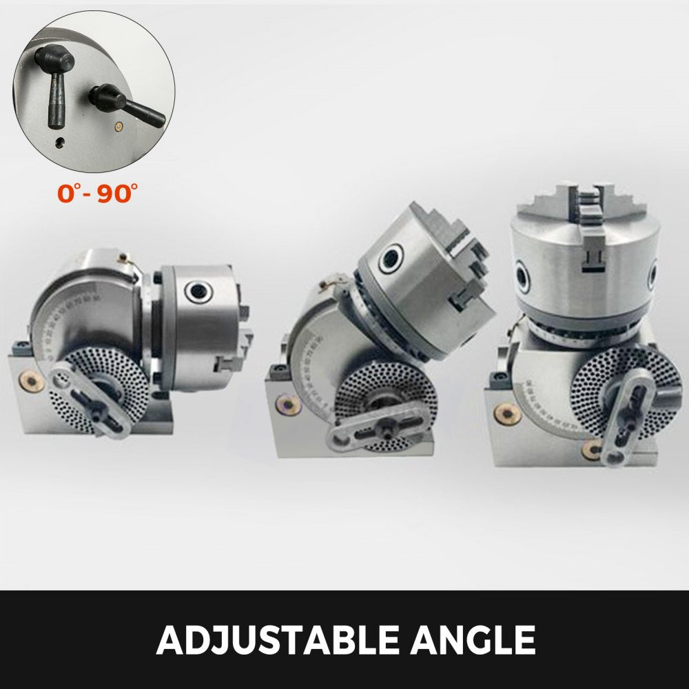 • 【HOEK INSTELBAAR】 - De semi-automatische verdeelkop heeft een 4 "3-klauwplaat. Spindelgatdiameter: 18 mm. De kop is verstelbaar tot 90 graden vanuit de horizontale positie. Middenhoogte: 4"/100 mm. 3 extra vrije kaken voor 4" klauwplaten.