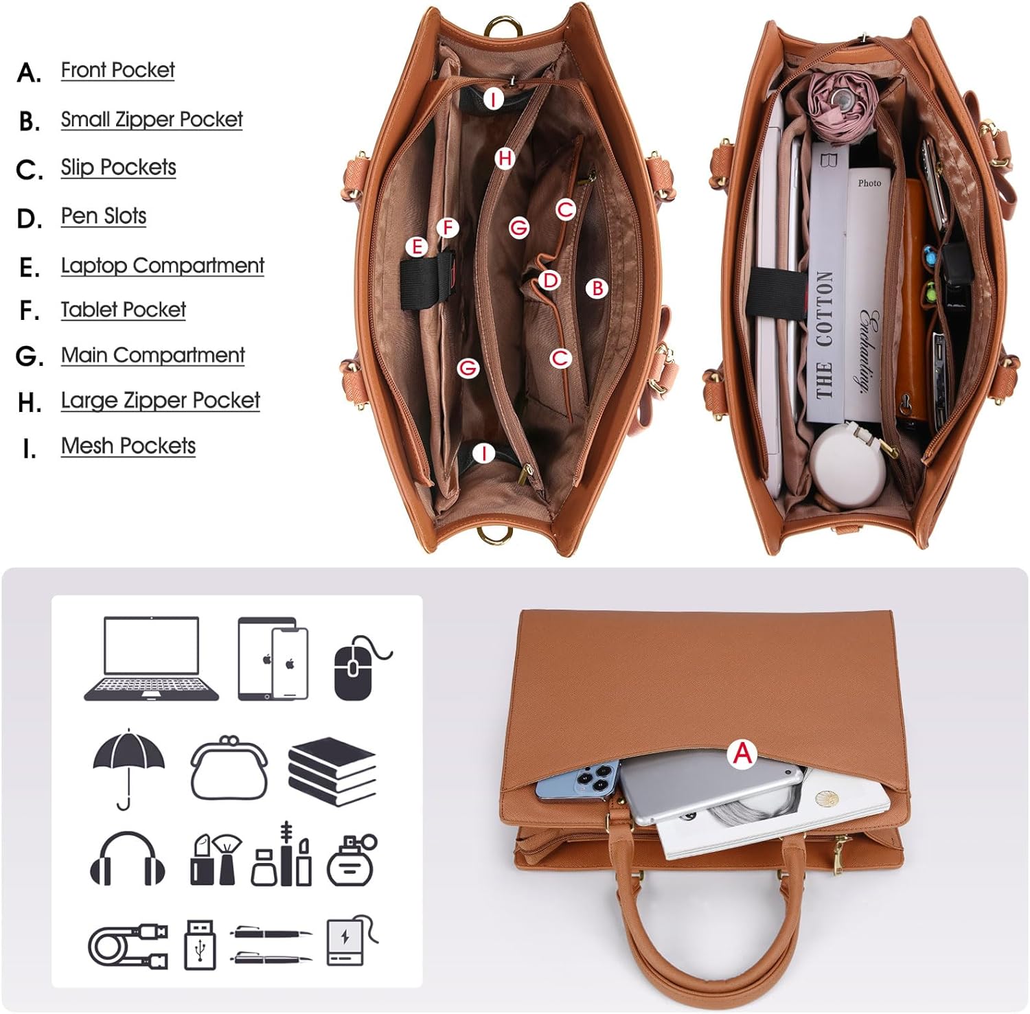 Praktische werktas: het voorvak met een stevige magnetische gesp biedt gemakkelijke toegang tot veelgebruikte items zoals je telefoon, sleutels of een tijdschrift. Door de grote capaciteit met meerdere vakken is er genoeg ruimte voor werkaccessoires, zoals laptop, tablet, waterflessen, A4-bestanden, cosmetica en meer. Deze modieuze werktas is perfect voor werk of zakenreis.