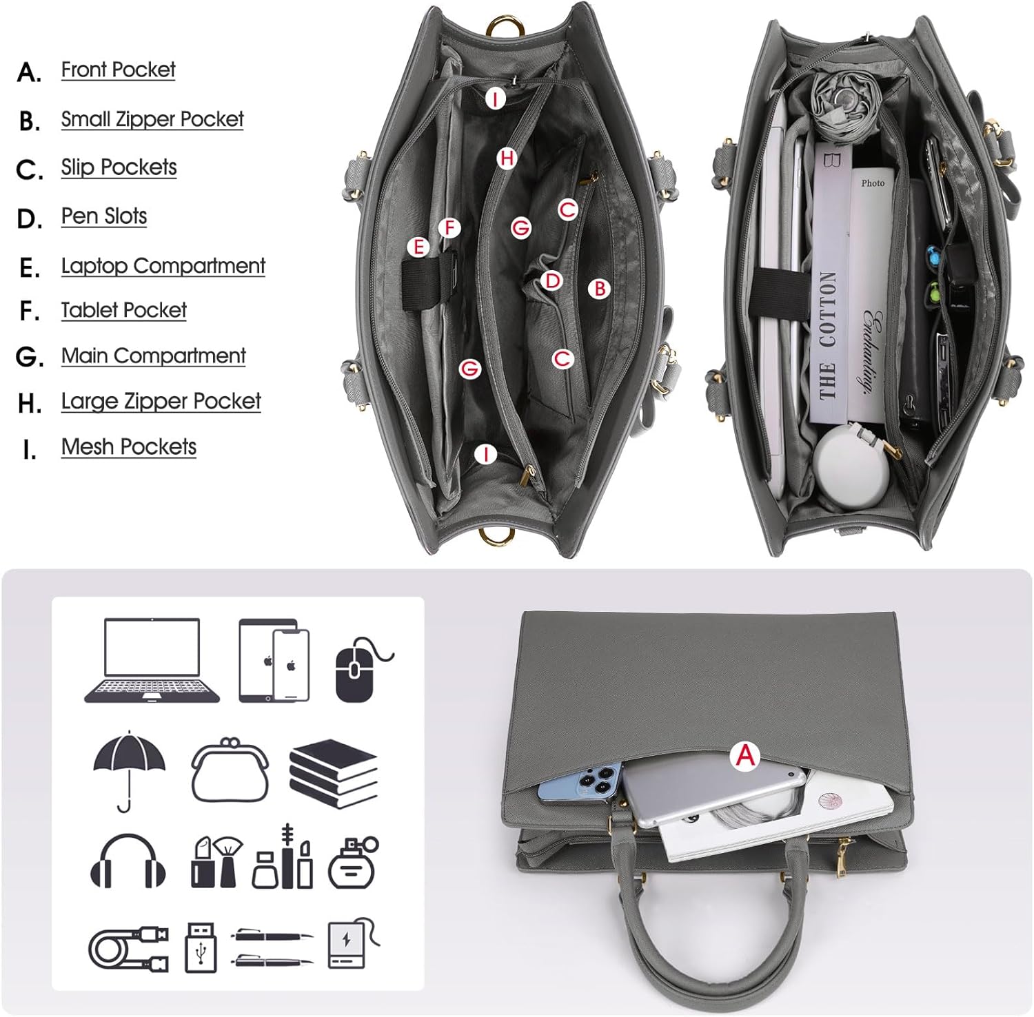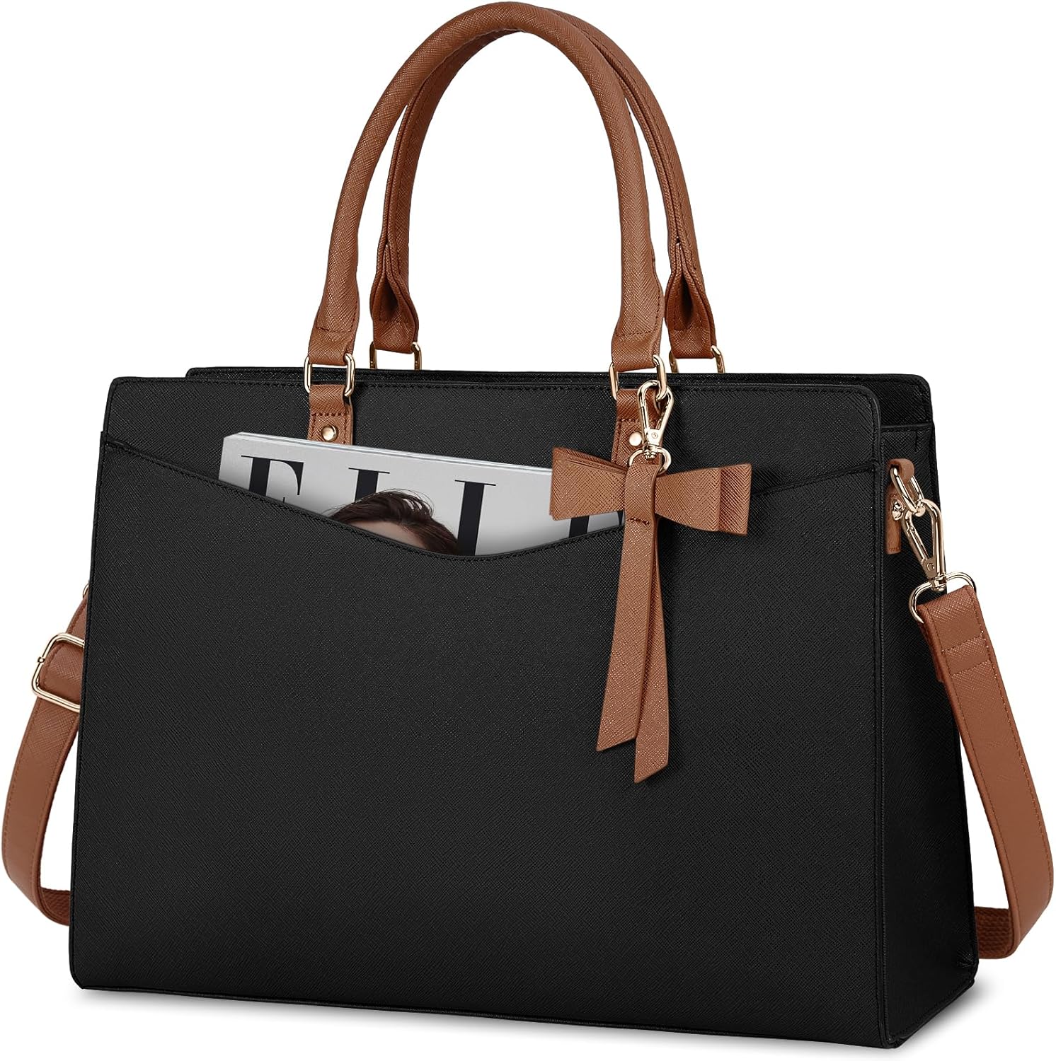 Praktische werktas: het voorvak met een stevige magnetische gesp biedt gemakkelijke toegang tot veelgebruikte items zoals je telefoon, sleutels of een tijdschrift. Door de grote capaciteit met meerdere vakken is er genoeg ruimte voor werkaccessoires, zoals laptop, tablet, waterflessen, A4-bestanden, cosmetica en meer. Deze modieuze werktas is perfect voor werk of zakenreis.