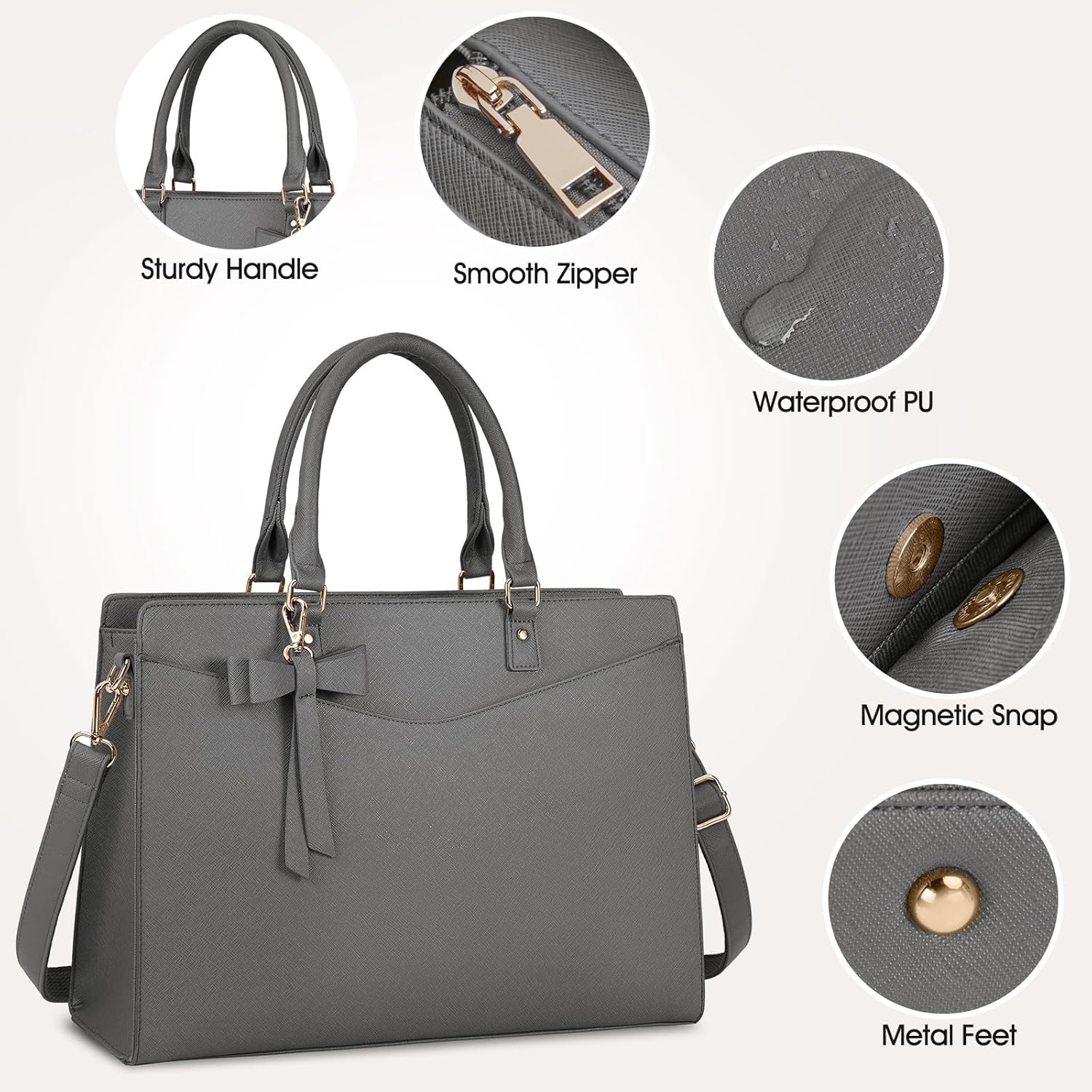 Duurzame handtas: deze laptoptas voor dames is gemaakt van PU-leder en heeft een nylon voering die prachtig is afgewerkt. De tas is waterafstotend en krasbestendig. De gladde ritsen zijn erg stevig en gaan lang mee. De vier metalen voetjes aan de onderkant beschermen de tas niet alleen tegen slijtage, maar zorgen er ook voor dat de handtas stabiel en rechtop blijft staan, zelfs als hij niet helemaal vol zit. Hij gaat lang mee en is duurzaam gedurende je drukke werkzaamheden.