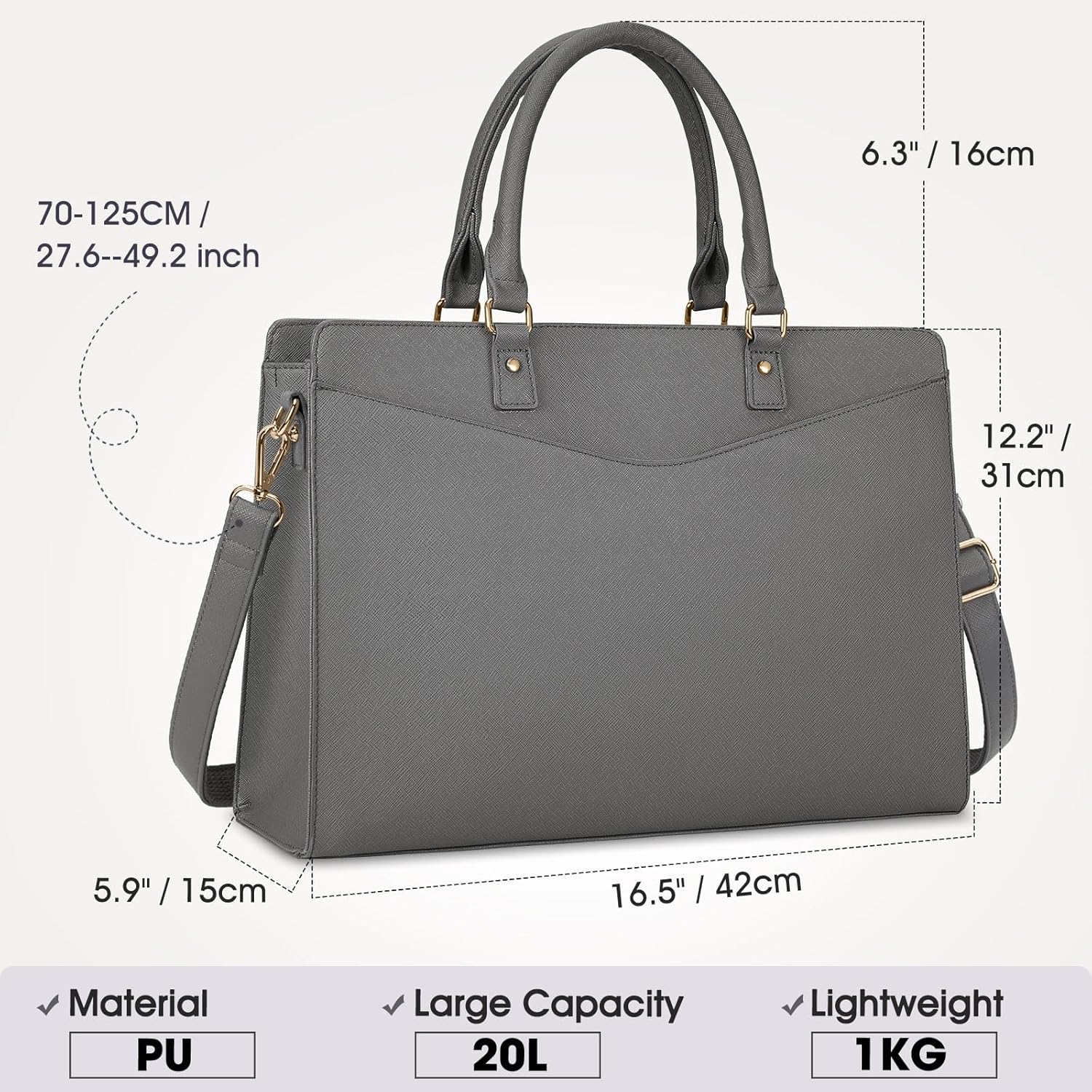 Veelzijdige schoudertas: wordt geleverd met verstelbare schouderriem (70-125 cm), gemaakt van een ander materiaal aan de onderkant dan aan de bovenkant, waardoor de tas comfortabel draagt en niet zomaar van je schouder glijdt. Het is niet alleen een aktetas en een handtas, maar ook een schoudertas of crossbody-tas. Een perfect cadeau voor dames die zowel stijl als gebruiksgemak waarderen, vooral geliefd bij stijlvolle professionals, advocaten, leraren en meer.