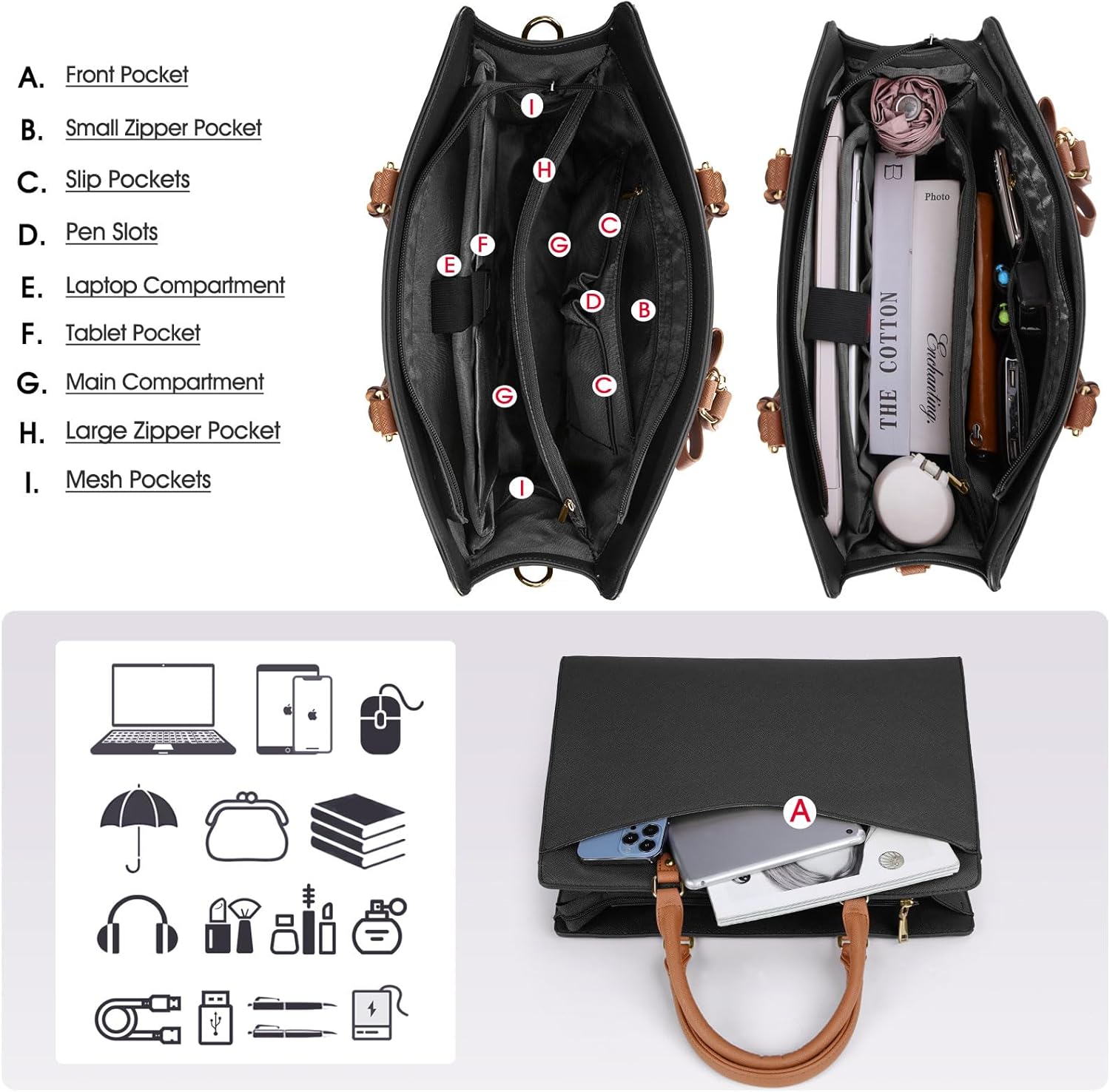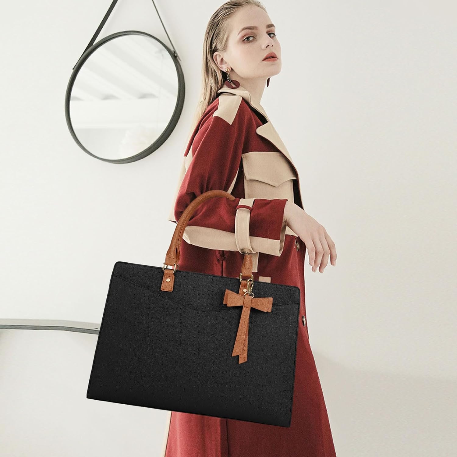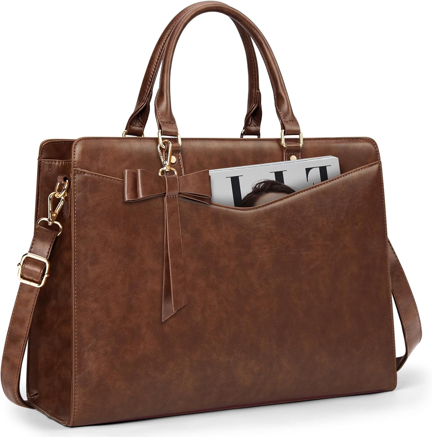 Praktische werktas: het voorvak met een stevige magnetische gesp biedt gemakkelijke toegang tot veelgebruikte items zoals je telefoon, sleutels of een tijdschrift. Door de grote capaciteit met meerdere vakken is er genoeg ruimte voor werkaccessoires, zoals onder andere een laptop, tablet, waterflessen, A4-bestanden, cosmetica. Deze modieuze werktas is perfect voor werk of zakenreis.