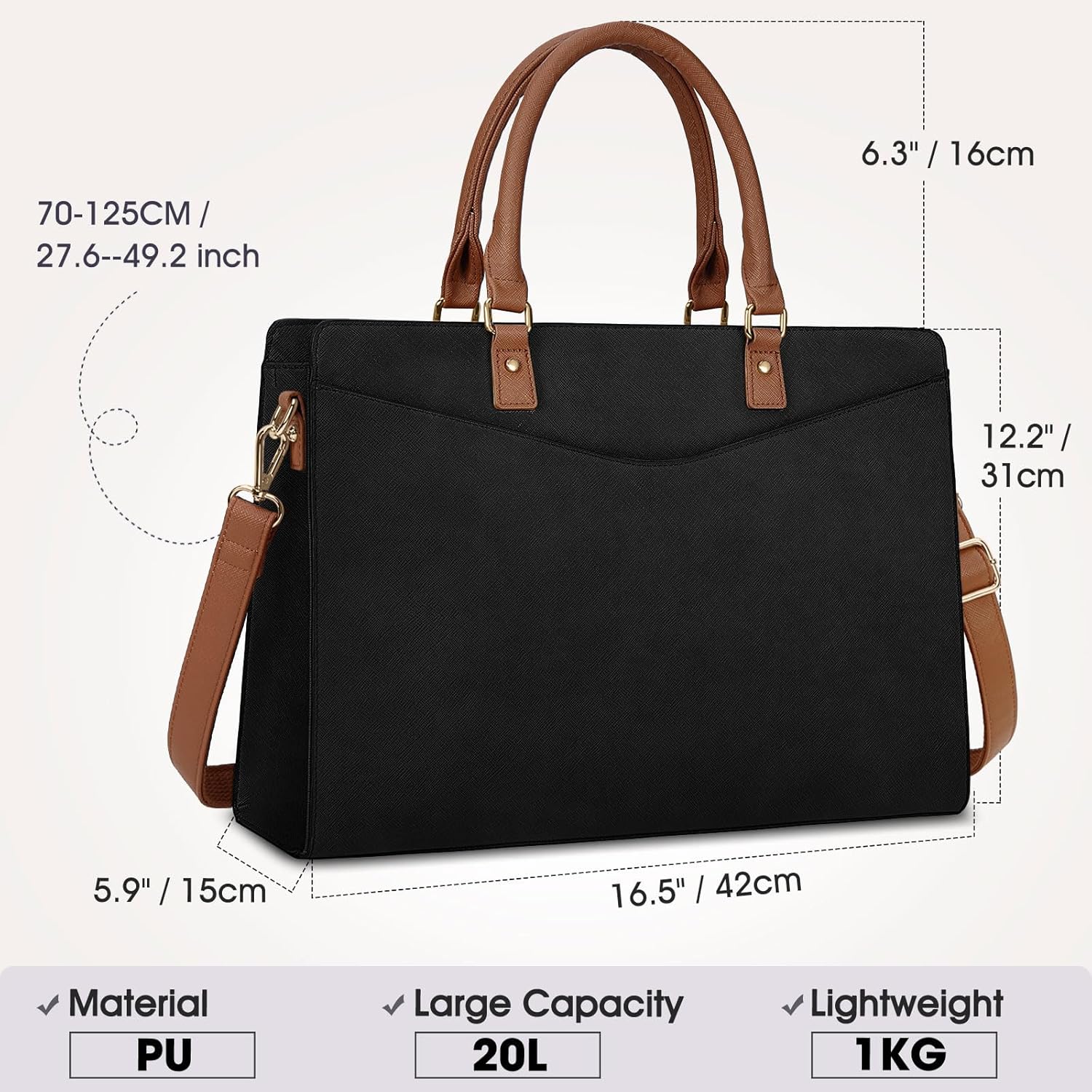 Veelzijdige schoudertas: wordt geleverd met verstelbare schouderriem (70-125 cm), gemaakt van een ander materiaal aan de onderkant dan aan de bovenkant, waardoor de tas comfortabel draagt en niet zomaar van je schouder glijdt. Het is niet alleen een aktetas en een handtas, maar ook een schoudertas of crossbody-tas. Een perfect cadeau voor dames die zowel stijl als gebruiksgemak waarderen, vooral geliefd bij onder andere stijlvolle professionals, advocaten, leraren.