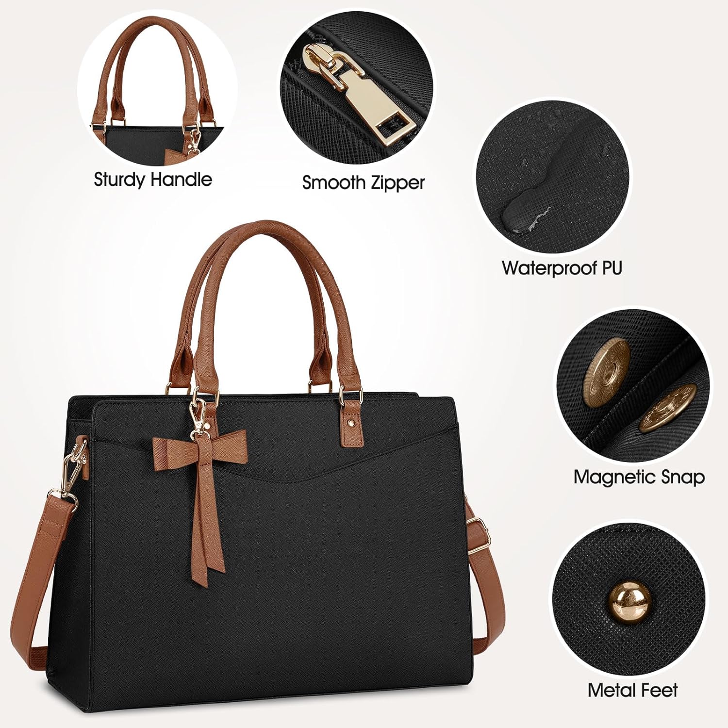 Duurzame handtas: deze laptoptas voor dames is gemaakt van PU-leder en heeft een prachtig afgewerkte nylon voering. De tas is waterafstotend en krasbestendig. De gladde ritsen zijn erg stevig en gaan lang mee. De vier metalen voetjes aan de onderkant beschermen de tas niet alleen tegen slijtage, maar zorgen er ook voor dat de handtas stabiel en rechtop blijft staan, zelfs als hij niet helemaal vol zit. Hij gaat lang mee en is duurzaam gedurende je drukke werkzaamheden.