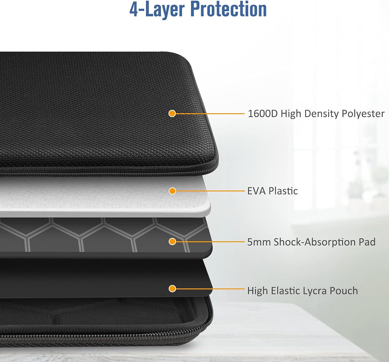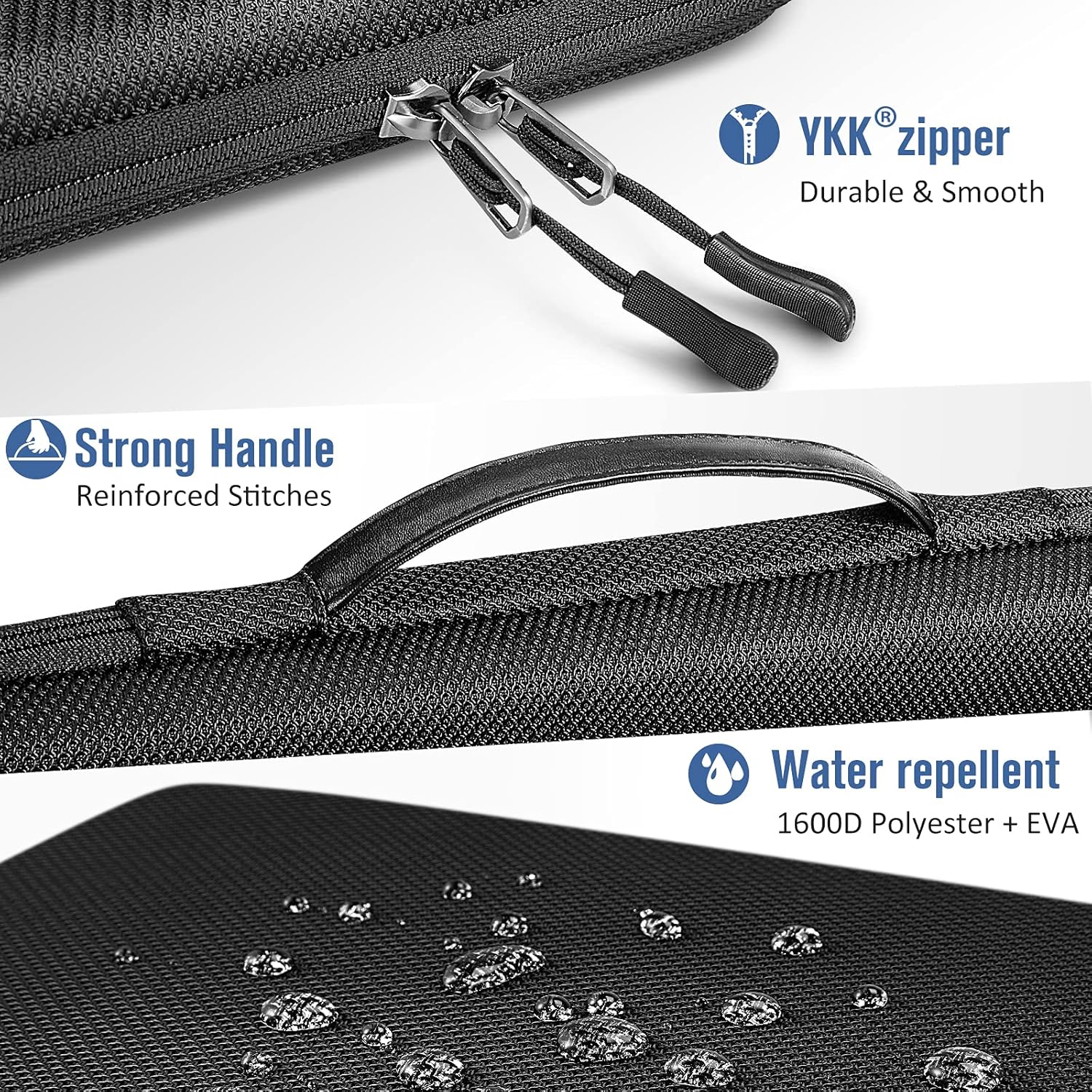 Uitstekende afwerking: Deze EVA-hardshell laptophoes is gemaakt van 1600 D hoge dichtheid polyester, dat zorgt voor een betere waterafstotendheid en slijtvastheid dan normaal nylon; gladde dubbele YKK-rits biedt gemakkelijke toegang tot je laptop en zorgt voor veiligheid
