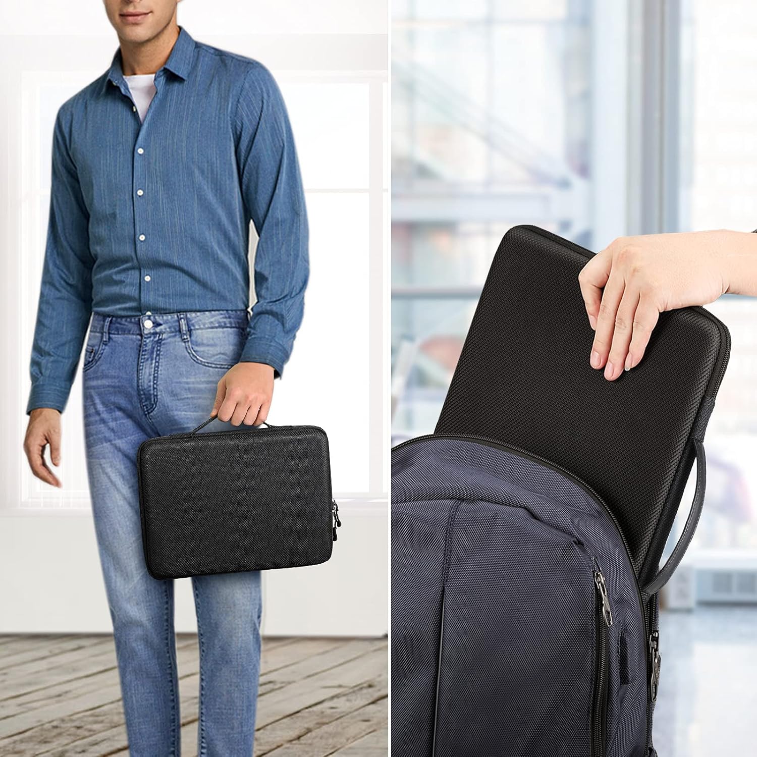 Grote draagbaarheid: Externe dimensie: 34,5 x 26 x 3,5 cm (LxBxH), slank en compact Je kunt hem onderweg meenemen met een handriem voor veiligheid, en het ruimtebesparende ontwerp stelt je in staat om de tas gemakkelijk in je aktetassen, rugzakken of bagage te dragen; Ideaal voor zaken, school en reizen.
