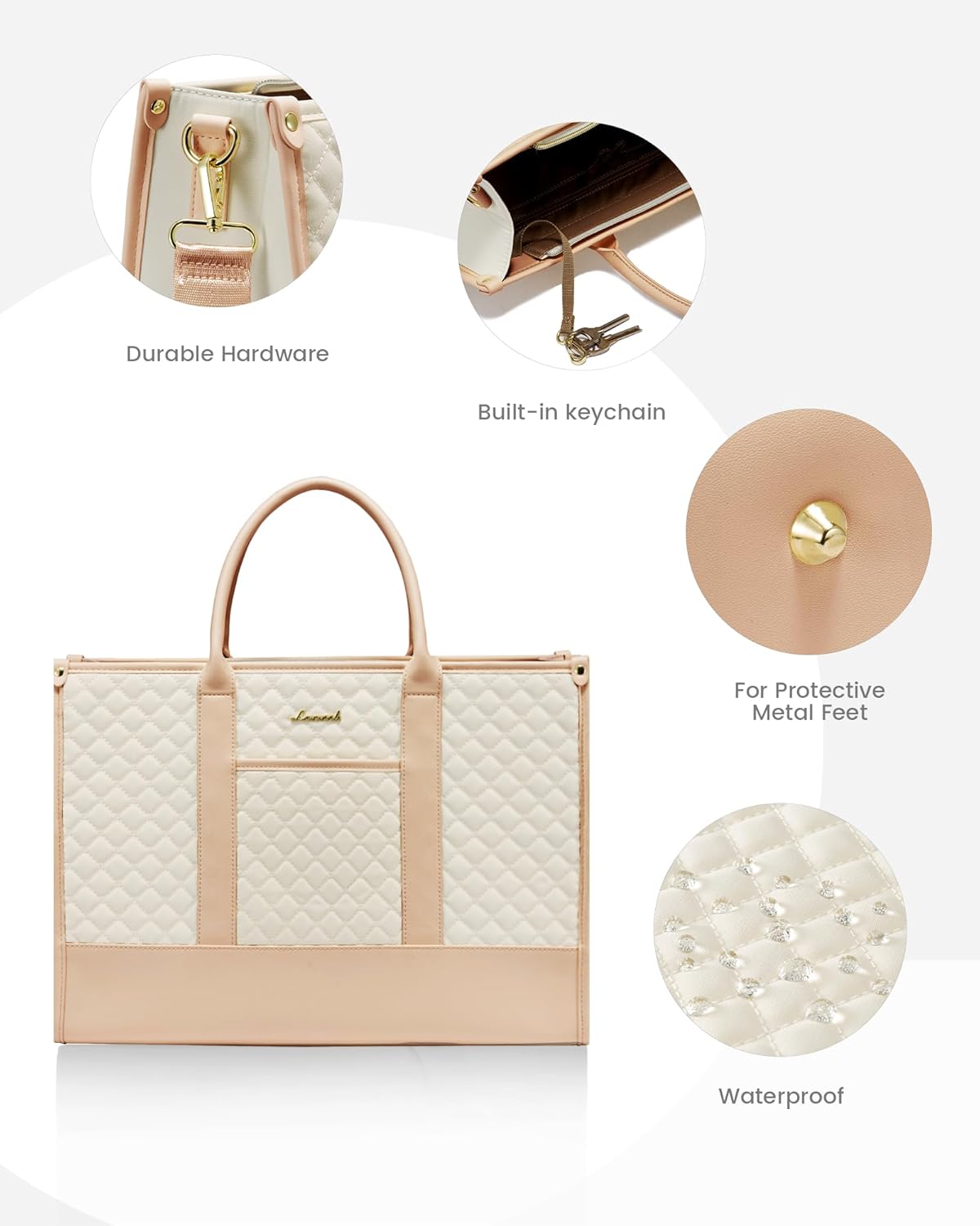👜 GROTE CAPACITEIT + MEERDERE COMPARTIMENTEN: Deze laptoptas meet 41×14×30CM/16,14×5,51×11,81inch, biedt veel ruimte en heeft meerdere compartimenten, zoals zijvakken voor flessen, pennenhouders, ritsvakken, enz. om je spullen goed georganiseerd te houden. Met een sleutelhaak kunt u uw sleutels🔑 snel vinden.