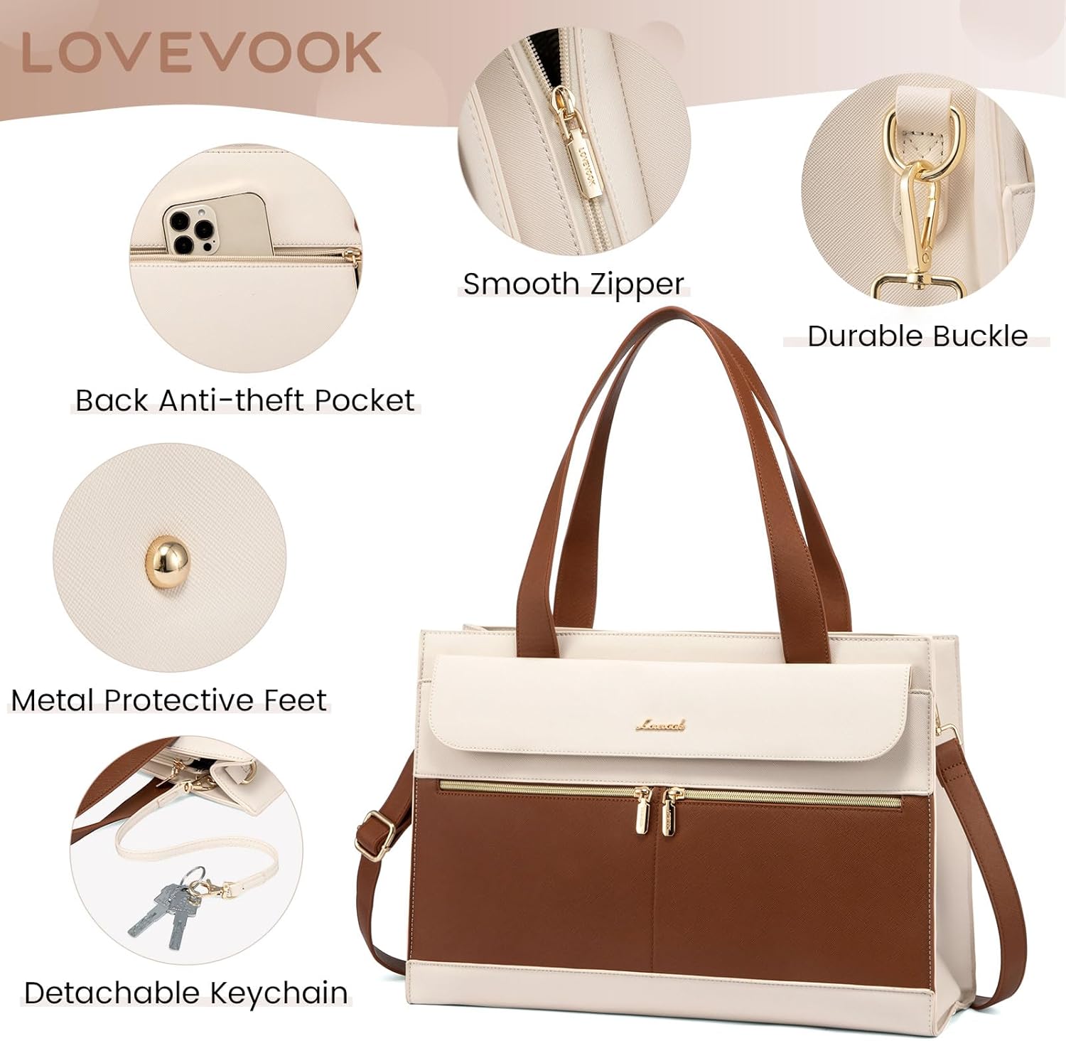 LOVEVOOK Laptoptassen voor vrouwen dames werktassen grote draagtas met laptopvak designer handtas stijlvolle PU-lederen aktetas voor school schoudertas voor kantoor en bedrijf
