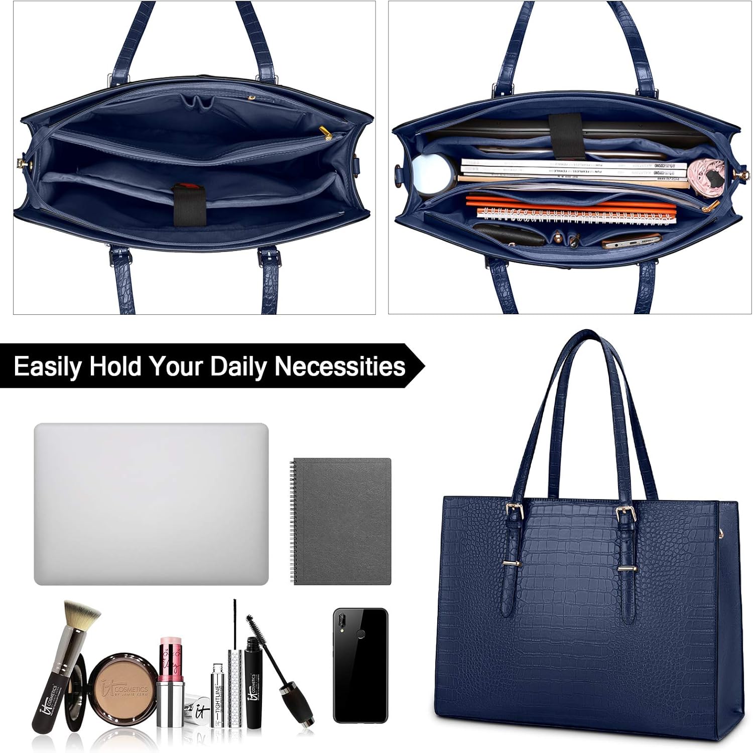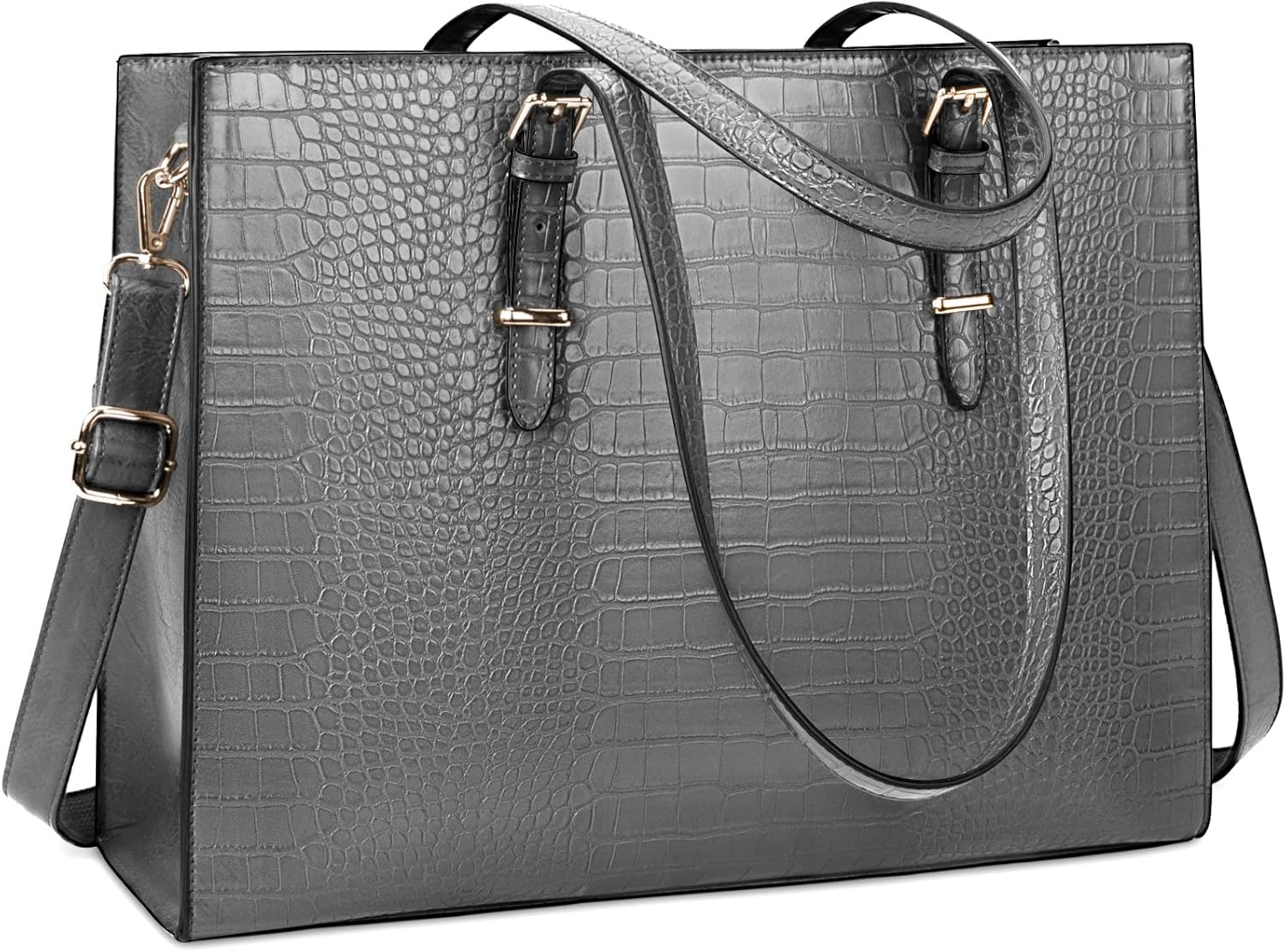 Duurzame laptoptassen voor dames: De Lubardy handtas is gemaakt van kunstkrokodillenleder met een polyester voering, waterdicht en krasbestendig. Stevige handgreep aan de bovenkant en professioneel gevoerd vak, houd je laptop en benodigdheden veilig. 4 klinknagels aan de onderkant kunnen de tas effectief beschermen wanneer hij op de grond staat.