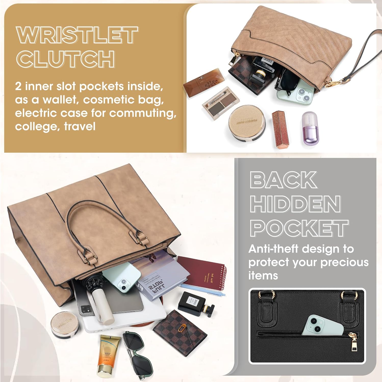👜Premium laptoptas: gemaakt van premium PU-leer en zachte nylon voering, de werkdraagtas is waterdicht en krasbestendig om ervoor te zorgen dat hij droog blijft wanneer hij op natte vloeren wordt geplaatst. Delicate hardware, versterkte stiksels en gladde ritsen verbeteren de duurzaamheid van de laptoptas voor dames. De 4 metalen voetjes aan de onderkant van de laptoptas verminderen wrijving en krassen, waardoor het gemakkelijk is om op te staan en stabiel te blijven, zelfs als je er veel items in stopt.