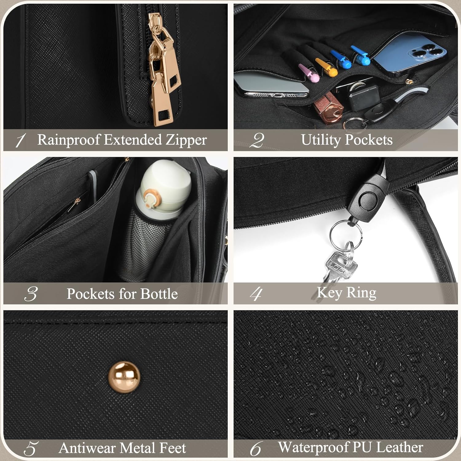 Laptoptas met grote capaciteit: Werktassen voor dames ontworpen met 1 apart laptopvak voor 15,6 inch laptops om je laptop te beschermen tegen stoten en krassen. 1 iPad-vak, 2 grote open vakken voor documenten en boeken, 1 groot vak met ritssluiting voor persoonlijke spullen, 2 binnenvakken voor waterflessen en paraplu's, 2 binnenzakken, 4 pennenzakken, 1 klein vak met ritssluiting voor identiteitskaart of portemonnee, 1 magnetisch knoopvak aan de voorkant.