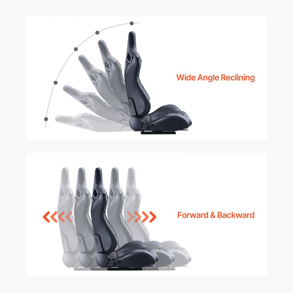 VEVOR 2 Racing Seat Racestoel PVC Leer Q235B Slider Cockpit Zwart Verstelbaar