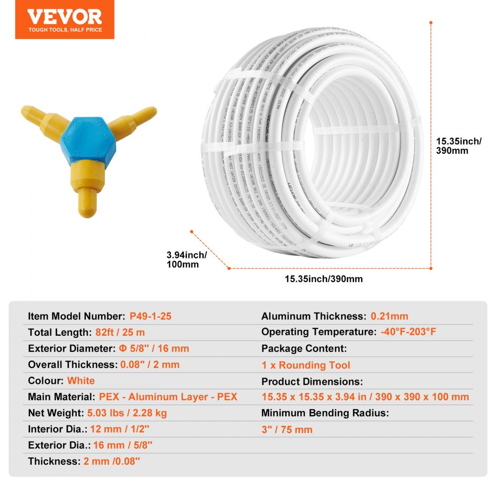 VEVOR 82 ft hoogwaardige pex-al-pex aluminium-kunststof composietbuis voor een veilige, lekvrije installatie.