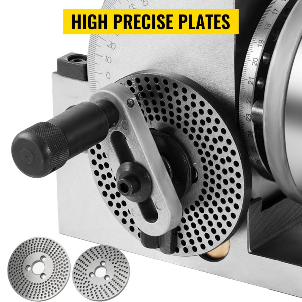 De indexeerkop ziet er niet alleen geweldig uit, maar stelt u in staat meer te doen met uw freesmachine: specifieke hoeken meten en een cirkel verdelen in equidistante bogen. Het wordt geleverd met 3 verwisselbare indexeerplaten en een losse kop om nauwkeuriger en stabieler te werken. Het zal uw perfecte assistent zijn om de groeven van een frees te bewerken, de tanden van een tandwiel te snijden, gebogen sleuven te frezen of een boutgatcirkel rond de omtrek van een onderdeel te boren.