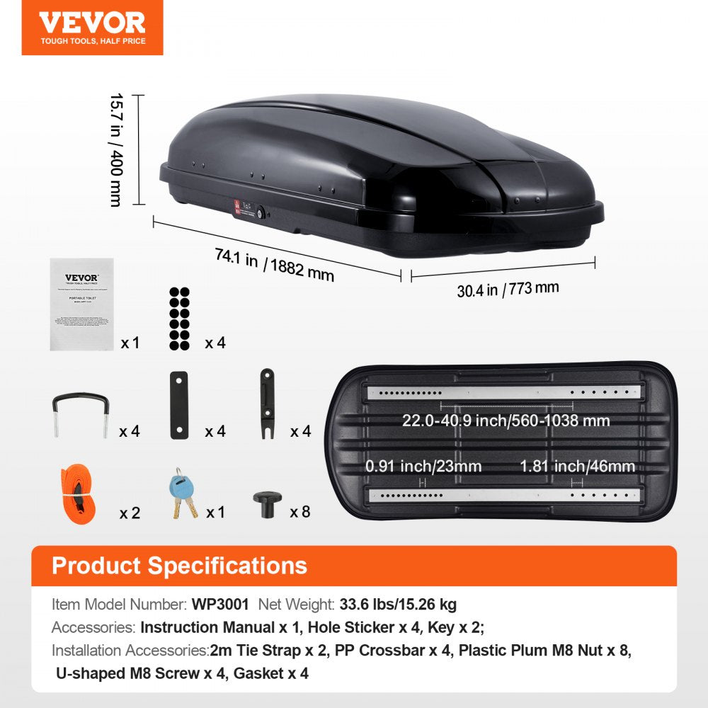 VEVOR Imperiaal Bagage-opbergbox ABS Auto's 370L 1882x773x400mm