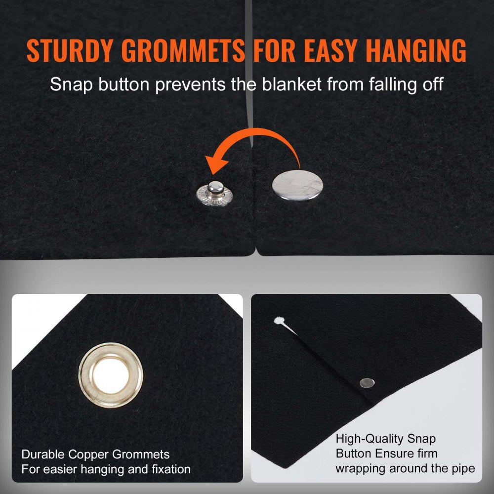 Het gebruik van onze zweetdeken is een fluitje van een cent! Met 2 metalen ogen voor stabiel ophangen en een drukknoopsluiting voor het veilig omwikkelen van de buis, kunt u tijdens het lasproces vertrouwen op de stabiliteit en veiligheid ervan.