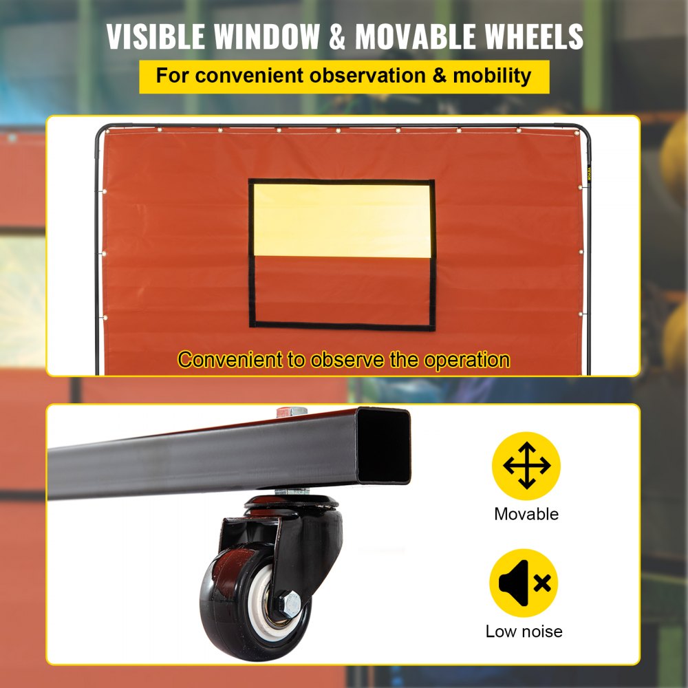 Gebruiksvriendelijk ontwerp van VEVOR lasgordijn met observatievenster en zwenkwielen.