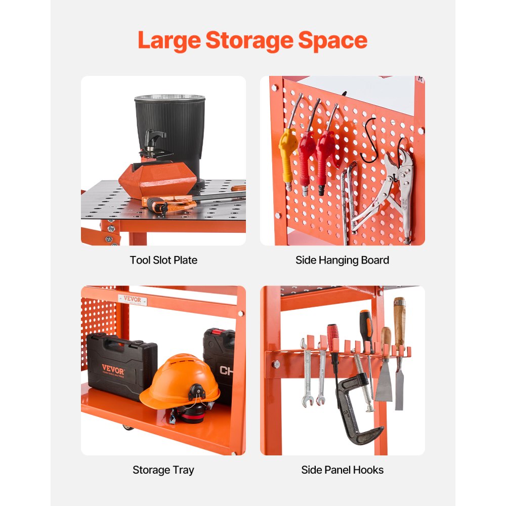 Deze laswerkbank is gemaakt van duurzaam, roestbestendig koolstofstaal en beschikt over een 3 mm dik tafelblad. Het biedt een indrukwekkend statisch draagvermogen van 800 lbs en een dynamisch draagvermogen van 600 lbs.