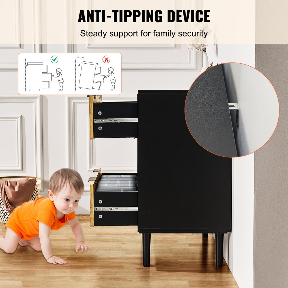 Het is ontworpen voor uw comfort. Het kantelbeveiligingssysteem zorgt voor een veilige stand en de metalen glijders op elke lade zorgen voor een soepele en stille opening en sluiting, waardoor het een gebruiksvriendelijke toevoeging aan uw huis is.