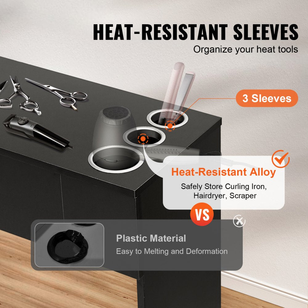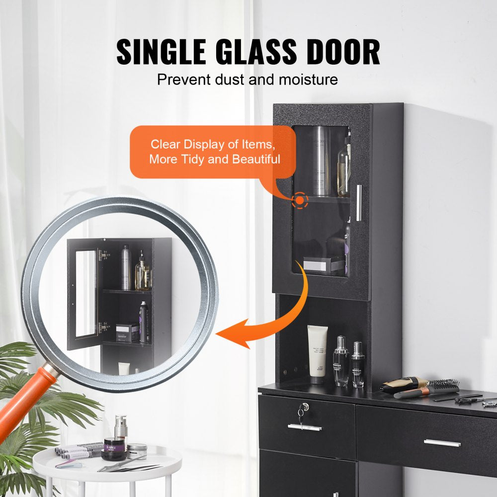 Ons salonstation voor kappers biedt efficiënte en gemakkelijke toegang tot gereedschap met 2 laden, 3 compartimenten en een kast. Houd uw werkplek schoon en georganiseerd!
