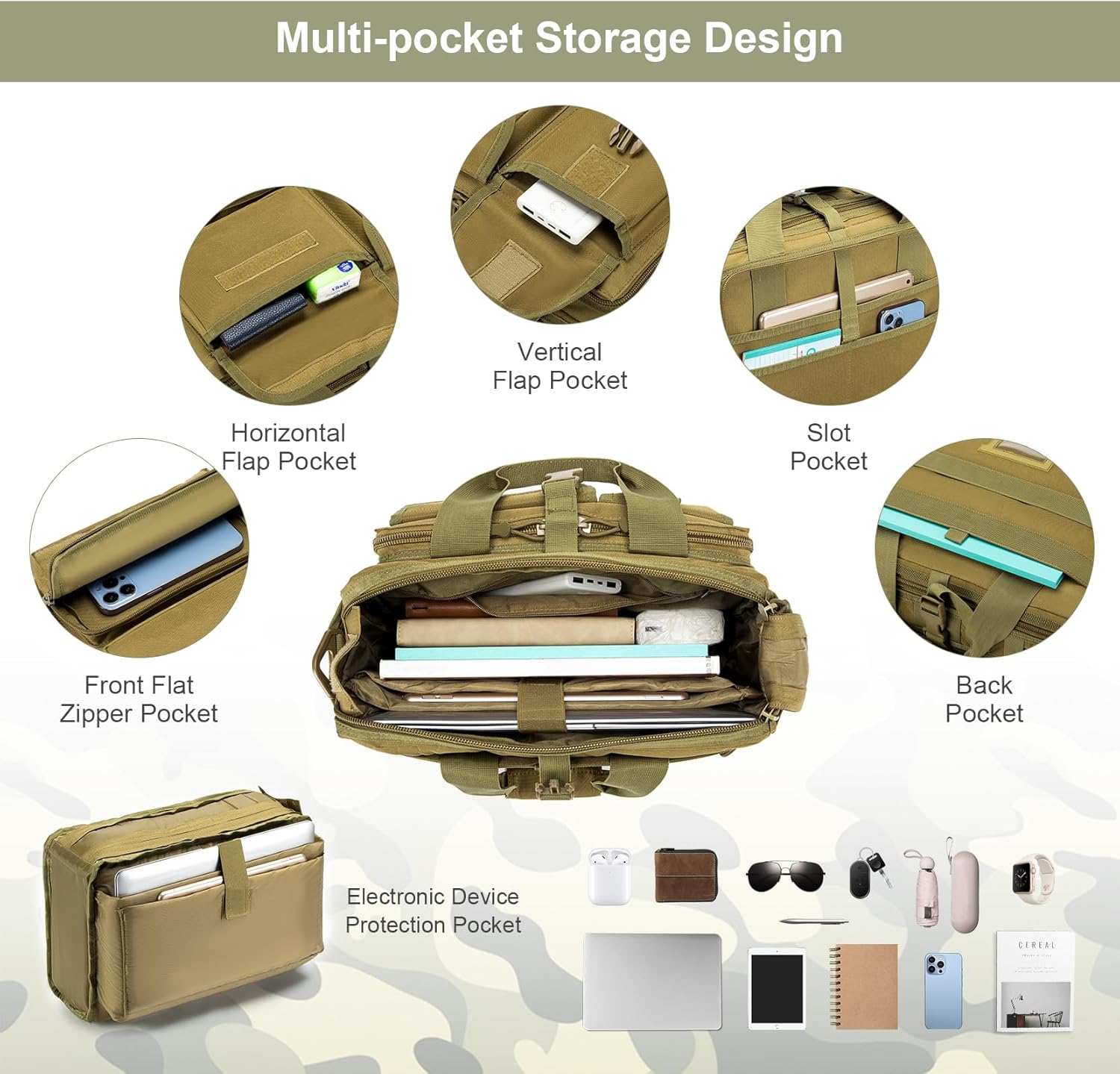 SPAHER Aktetas Heren Werktas Heren Laptoptas 14/15.6/17.3 Inch Zakelijk Tactische Tas Militaire Tas Schoudertas Messenger Bag Heren Cadeau voor Dames Heren