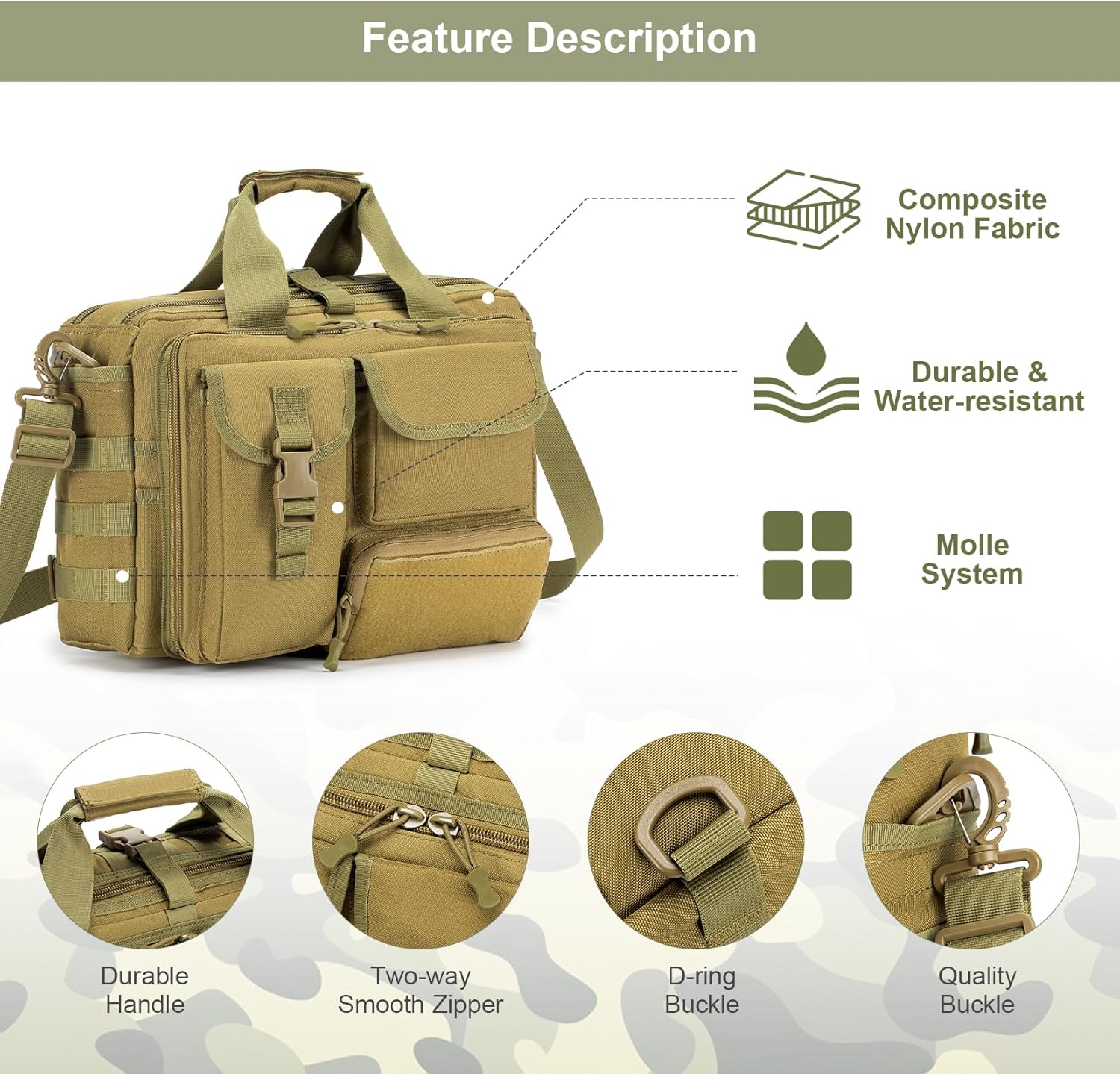 Materiaal aan buitenkant OxfordMateriaal aan binnenzijde NylonType sluiting RitsHoogwaardige materialen: SPAHER tactische laptopschoudertas is gemaakt van hoogwaardig duurzaam 800D Oxford-materiaal,... Lees meer