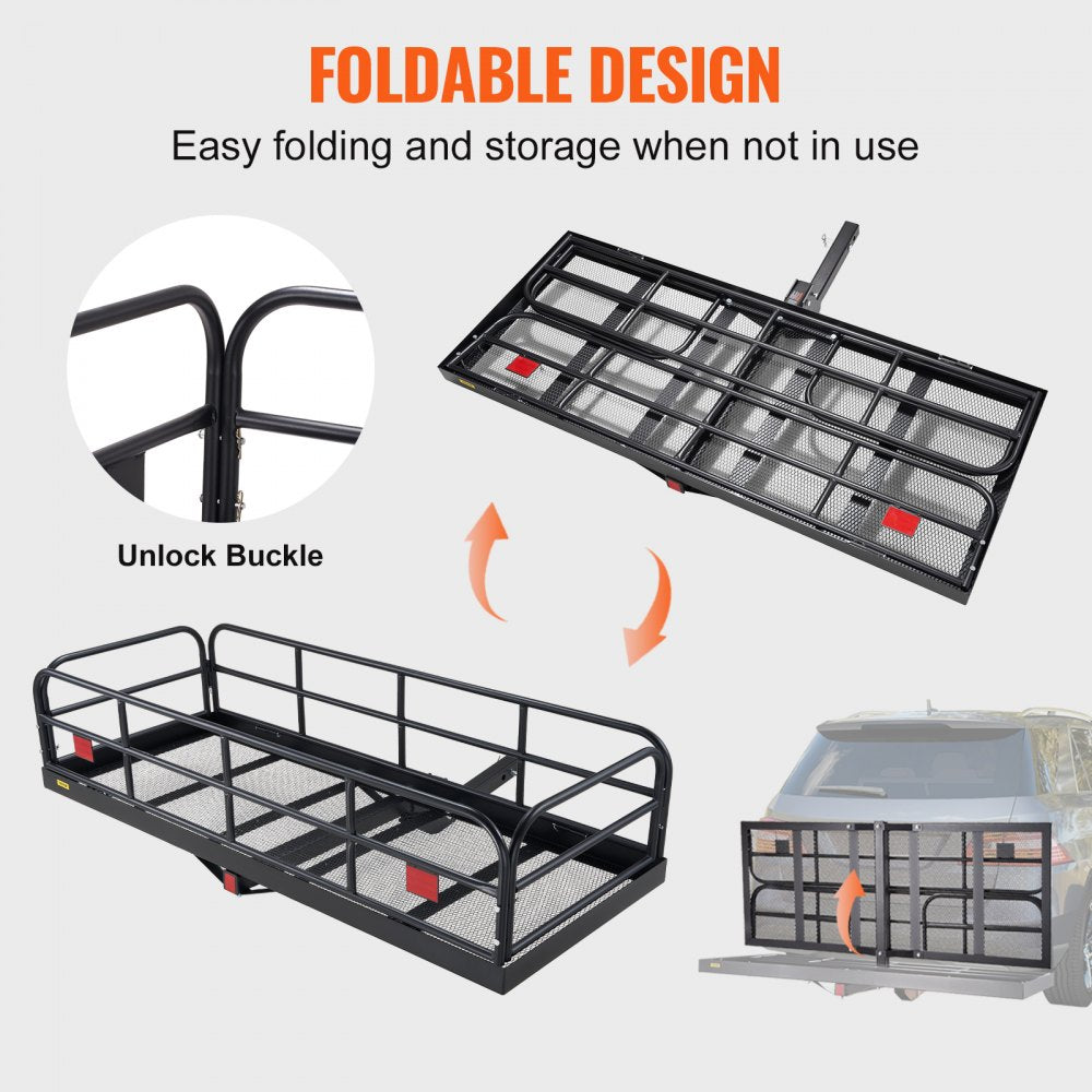 VEVOR 1524 x 610 x 355 mm bagagerek met trekhaak Game Carrier achterdrager, 181,4 kg laadvermogen, gemonteerde bagagemand, Q235B roestvrijstalen bagagerek, geschikt voor SUV, vrachtwagen etc.