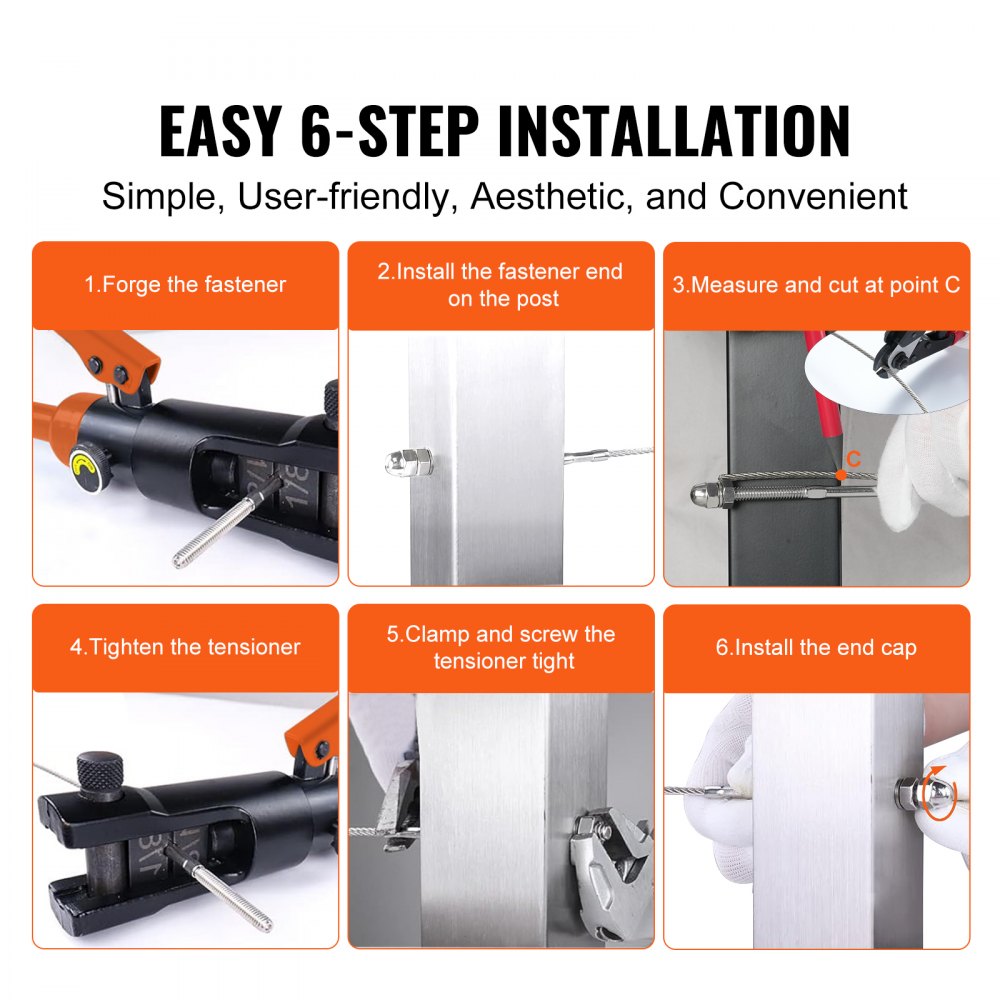 Met deze relingset kunt u niet alleen staalkabels vastzetten en slijtage aan de railing verminderen, maar ook lelijke gaten afdekken. Dit verbetert de algehele visuele esthetiek en verjongt het landschap voor uw ogen.