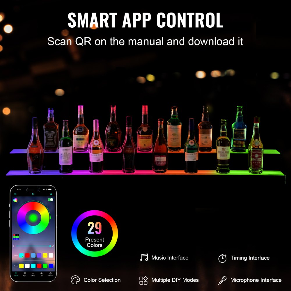 • Gratis bediening binnen 8 meter: Ben je de verwarrende instellingen en aanpassingen beu? Met onze barverlichting heb jij de controle! Ondersteund door RF-afstandsbediening en intelligente app-bediening, kunt u effecten naar wens aanpassen, waaronder 7 statische kleuren, 22 dynamische kleuren, meerdere doe-het-zelf-modi, muziekmodi en timing van 1-4 uur. Bovendien kunnen meerdere bars tegelijkertijd worden bediend met één enkele afstandsbediening.