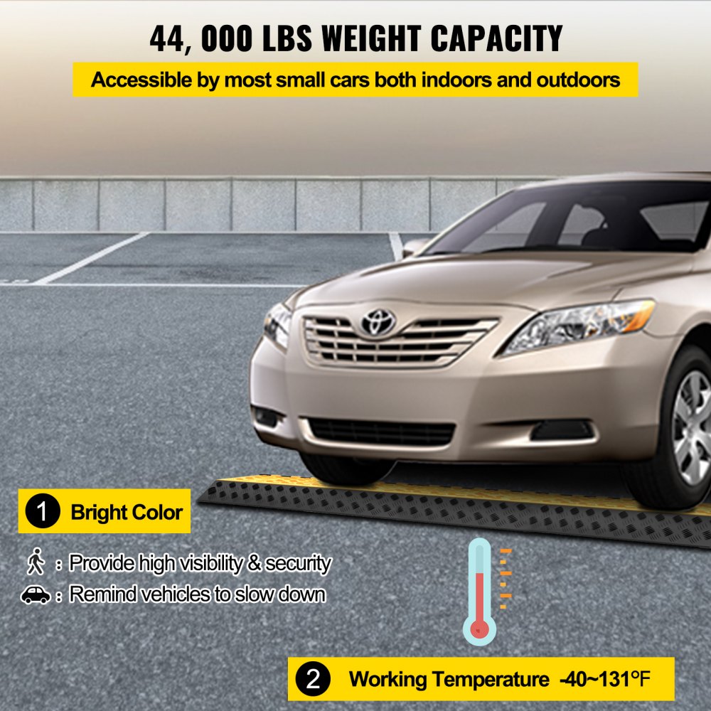 Deze rolbeveiliging is ontworpen om de verkeerssnelheid te regelen en voldoende ruimte te bieden voor straatkabels zonder auto's of wegen te beschadigen. De oprijplaat is gemaakt van hoogwaardig rubber, heeft een PVC-hoes voor duurzaamheid, heeft een draagvermogen van 19,958 kg en is zelfs 's nachts veilig.
