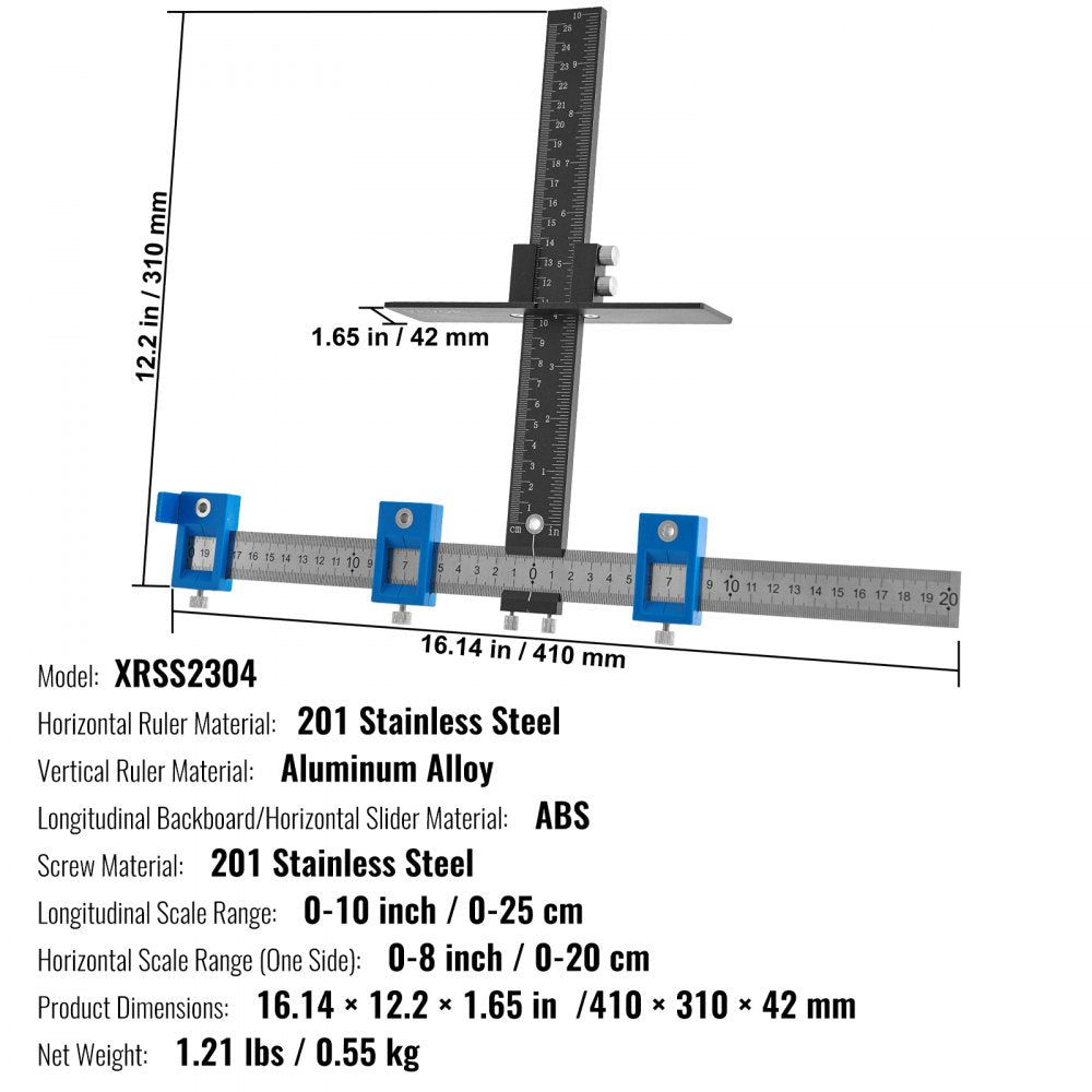 VEVOR Kasthardwaremal Verstelbare ponslocator 0-25 cm verticaal, Kasthardwaremal 0-20 cm Horizontale boorgeleider Punchlocator Aluminiumlegering + roestvrijstalen boorponslocator