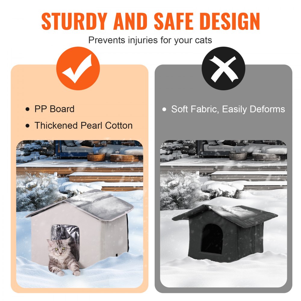 VEVOR Kattenhuis Kattengrothut Verwarmd 48x56x44cm Grijs (M)