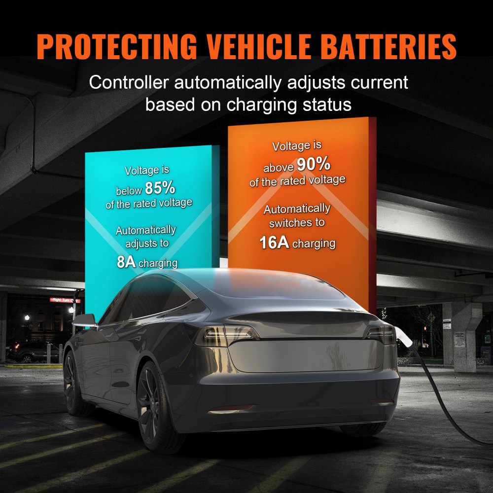 VEVOR 16A draagbare EV-oplader is compatibel met de meeste elektrische voertuigen die voldoen aan de IEC 62196-normen. Het heeft een LCD-scherm en een energie-instelling met 4 niveaus, zodat u meer tijd kunt besparen wanneer u op avontuur gaat en kampeert.