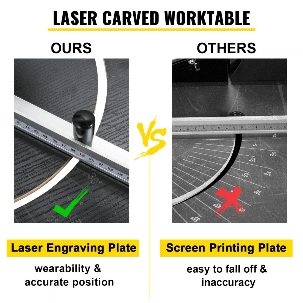 • 【WERKBANK MET LASERMARKERING】 - In vergelijking met andere werkbanken voor zeefdruk, past de onze geavanceerde lasermarkeertechnologie toe. Het gebied waar de schaal wordt weergegeven, heeft een hogere schuurprestatie, waardoor u de snijhoek snel en nauwkeurig kunt lokaliseren om nauwkeuriger te kunnen snijden.