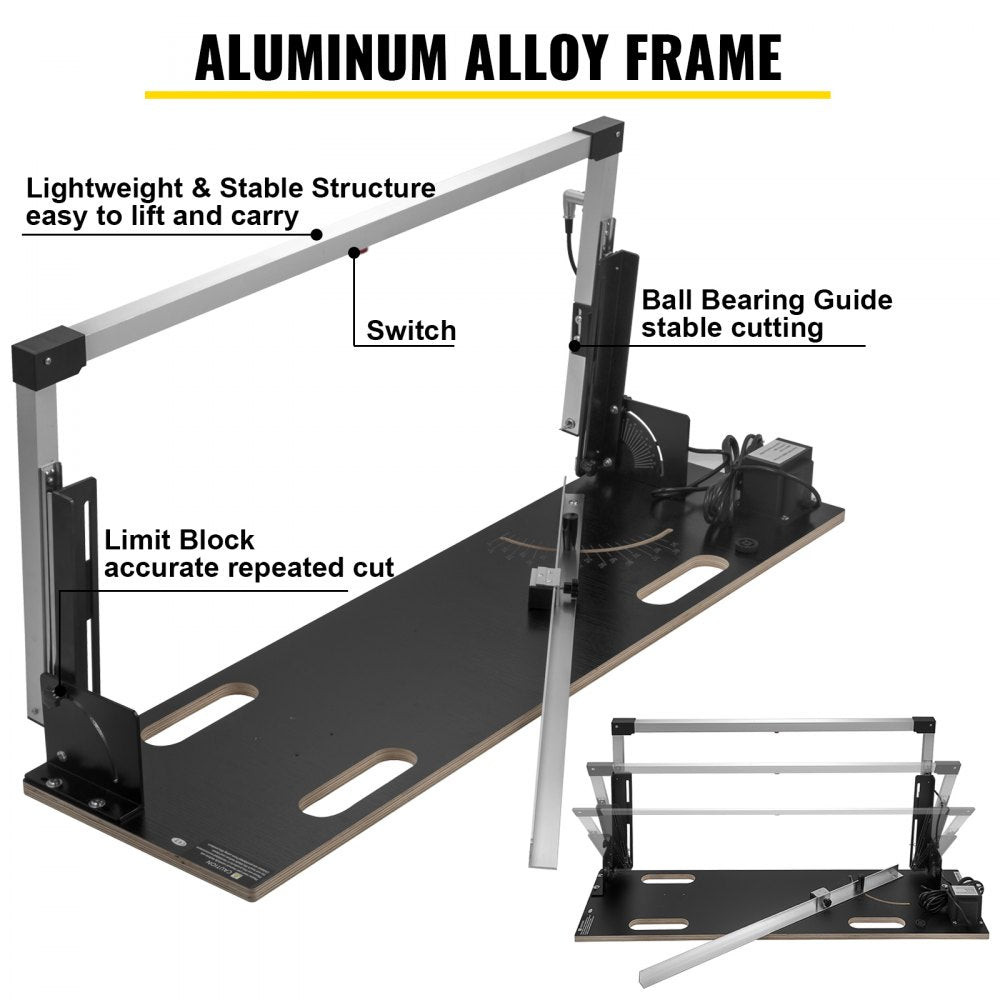 Het extra lichte frame van aluminiumlegering is draagbaar om het apparaat te dragen en te bedienen. De stopknop is al voorgeïnstalleerd om de zaagdieptes in te stellen, waardoor snelle herhaalde zaagsneden op een hele reeks hardschuimpanelen mogelijk zijn.