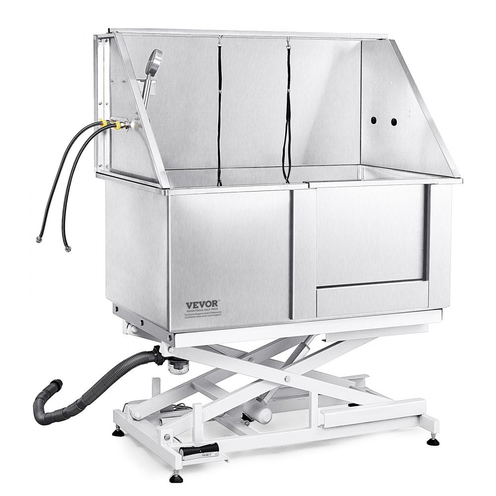 VEVOR Professionele hondenverzorgingskuip 127cm roestvrijstalen huisdierenbad hondenwasstation max. 150kg honden in hoogte verstelbaar hondenwassysteem huisdierverzorgingskuip met rechterdeur hondendouche waskuip