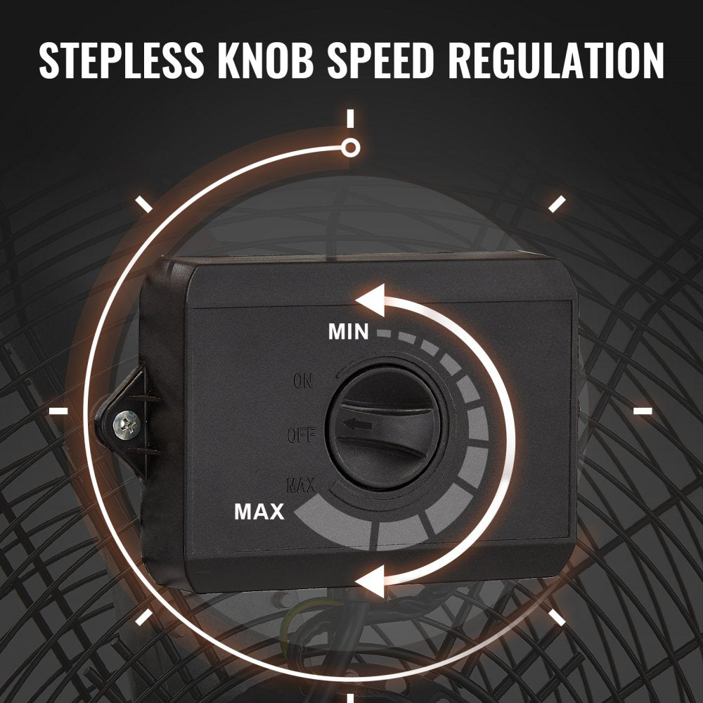 • Variabele snelheidsregeling: deze industriële ventilator maakt de luchtstroomregeling ongelooflijk eenvoudig dankzij het traploze snelheidsregelingsontwerp. Met slechts een lichte draai kun je de windsterkte aanpassen, wat zorgt voor een verfrissende en comfortabele ervaring!