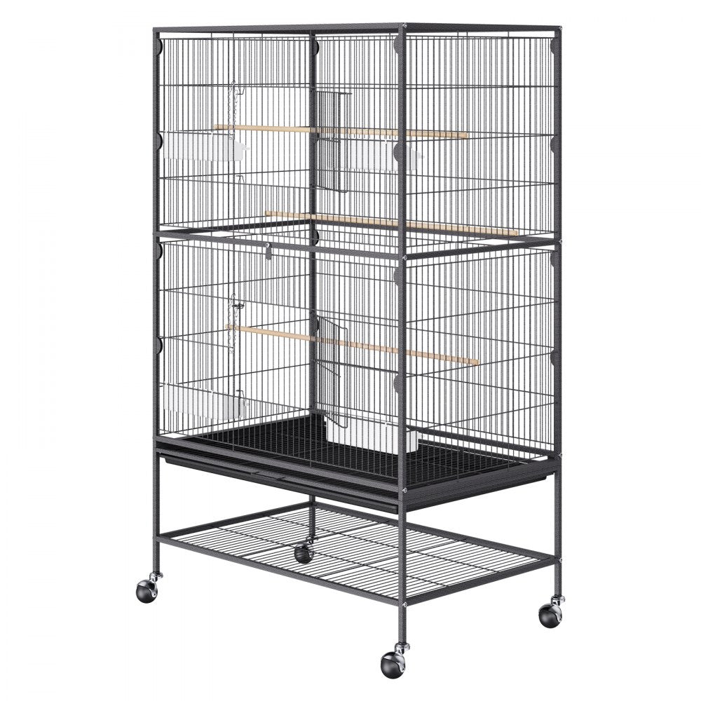 Met een afmeting van 79 x 51 x 132 cm en een roosterafstand van 1,52 cm biedt deze vogelvluchtkooi voldoende ruimte voor 2-3 middelgrote tot grote vogels om te springen, vliegen en hun natuurlijke instincten te bevredigen.
