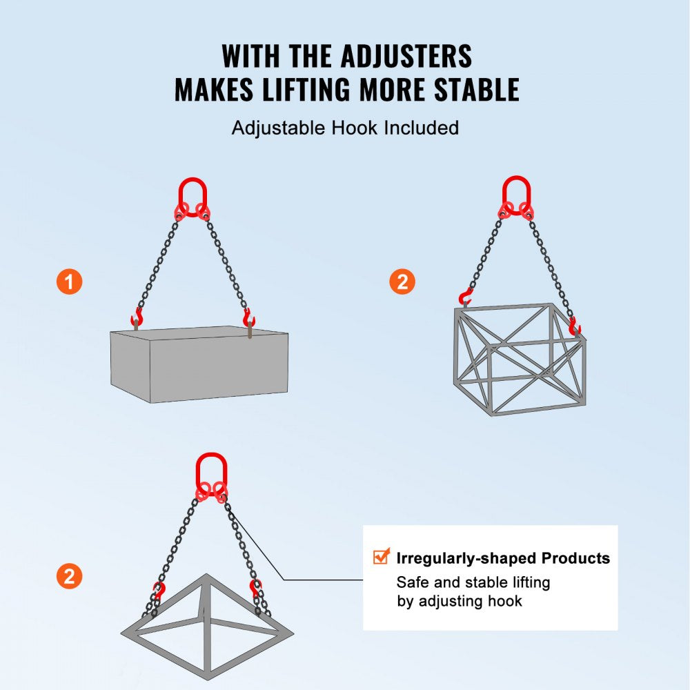 VEVOR, uw exclusieve gereedschapsexpert. Deze kettinghanger is gemaakt van hoogwaardig staal. Het beschikt ook over haken met veertongen voor een betere grip en beveiliging van grote ladingen.