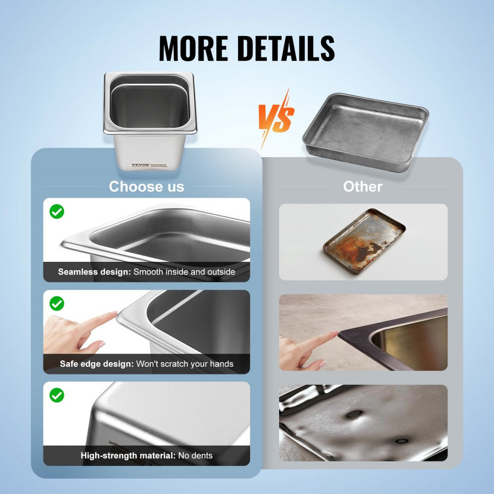 VEVOR 6 x hotelpannen gastronormbakken RVS 1/6 maat 178x168x160mm