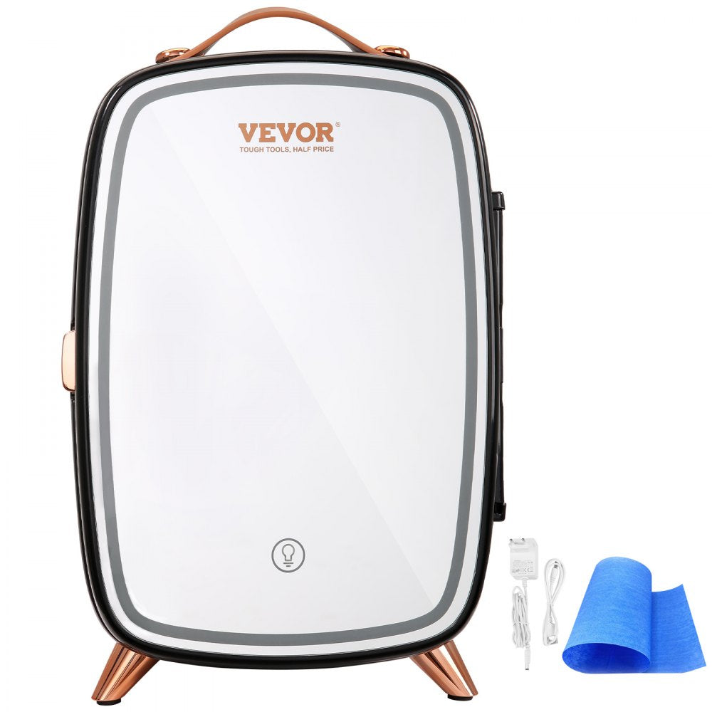 VEVOR 6L draagbare gespiegelde schoonheidskoelkast met LED-verlichting, zwarte 9V DC make-up minikoelkast, 8 blikken 3 LED-spiegellichtmodus, kleine huidverzorgingskoelkast voor kantoor, slaapkamer, enz.