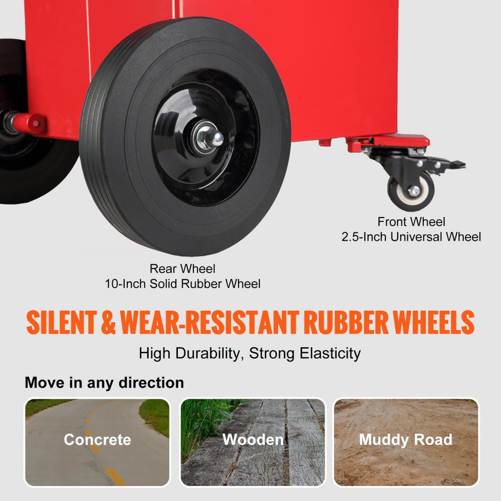 Deze tankwagen is uitgerust met 2,5" universele wielen (voor) en 10" achterwielen, die eenvoudig naar elk tankstation kunnen worden verplaatst. De rubberen wielen roesten niet, wat een lange levensduur en betrouwbare werking garandeert.