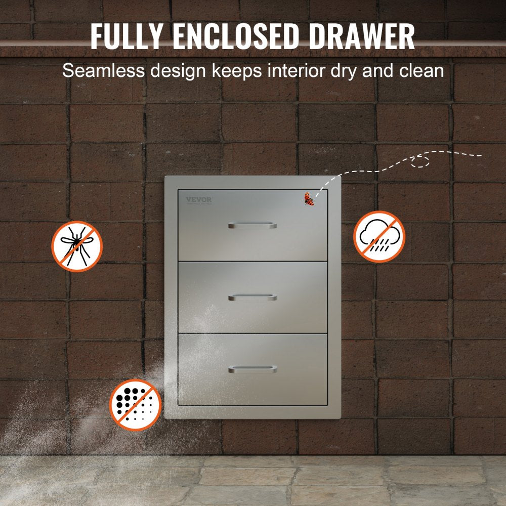 VEVOR buitenkeukenlades lades buitenkeuken, 40 x 55 x 45 cm, inbouw, drievoudige toegang grilllades met roestvrijstalen handgreep, grilleilandlades voor buitenkeukens