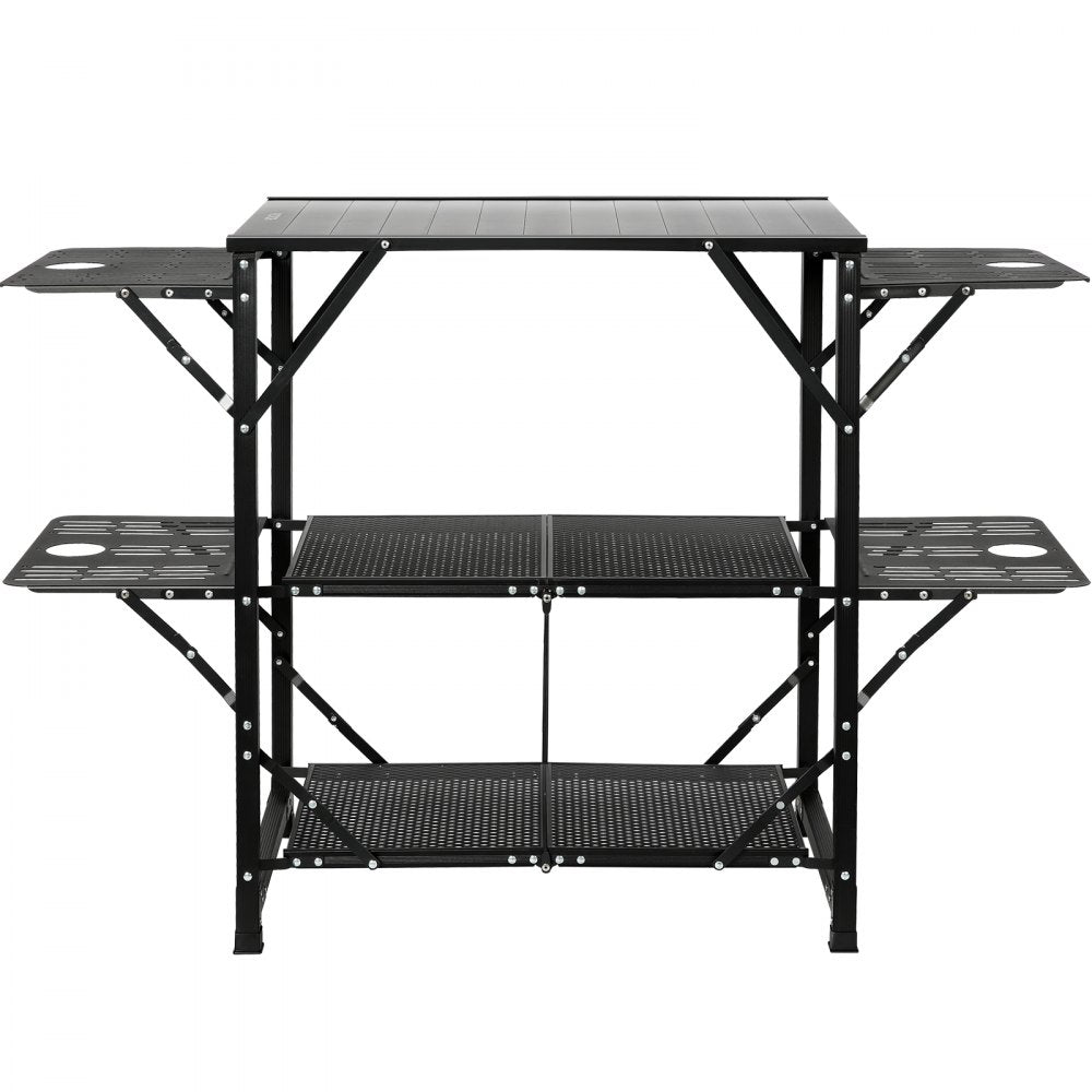 VEVOR Camping Keukentafel Aluminium Opvouwbaar Draagbaar Outdoor Kookstation met 4 Ijzeren Zijkanten 2 Planken en Draagtas Snelle Installatie voor Picknick, BBQ, Strand, Reizen etc.