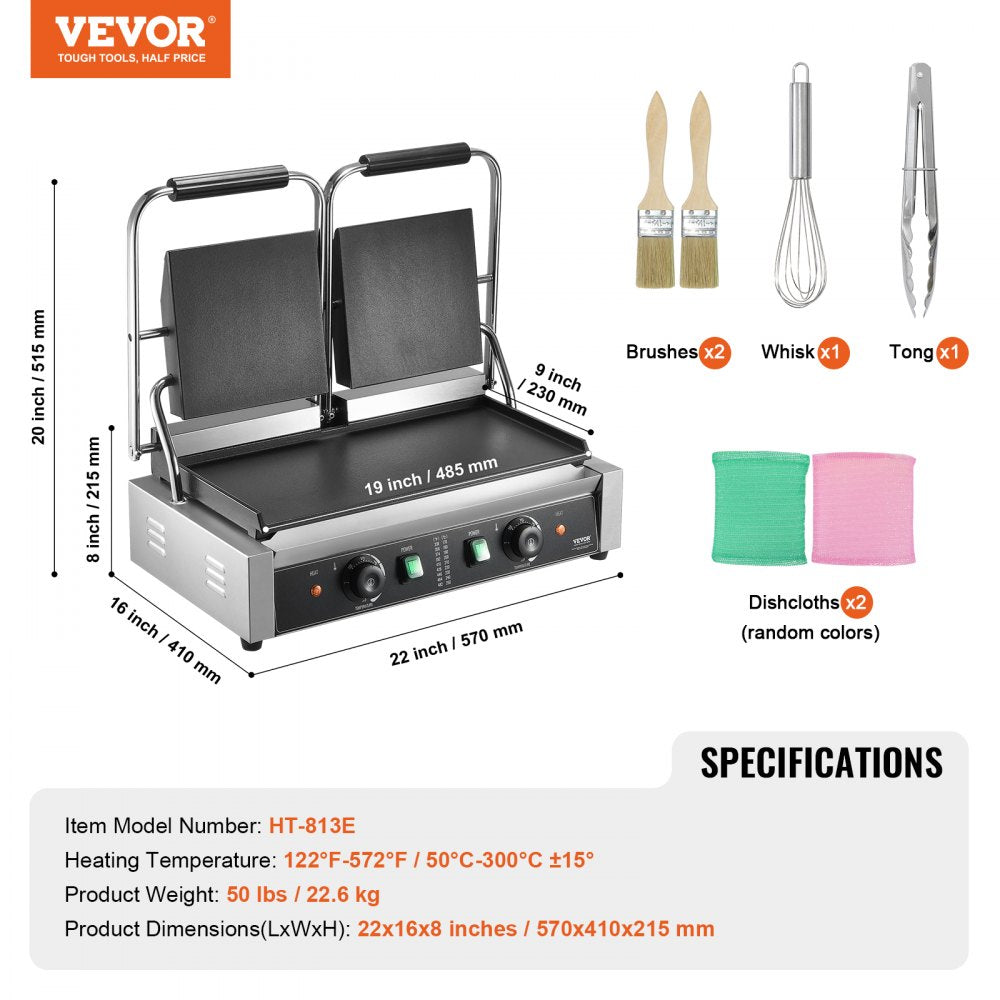 VEVOR Commerciële Panini Press Grill Elektrische Sandwichmaker Plaat Plat