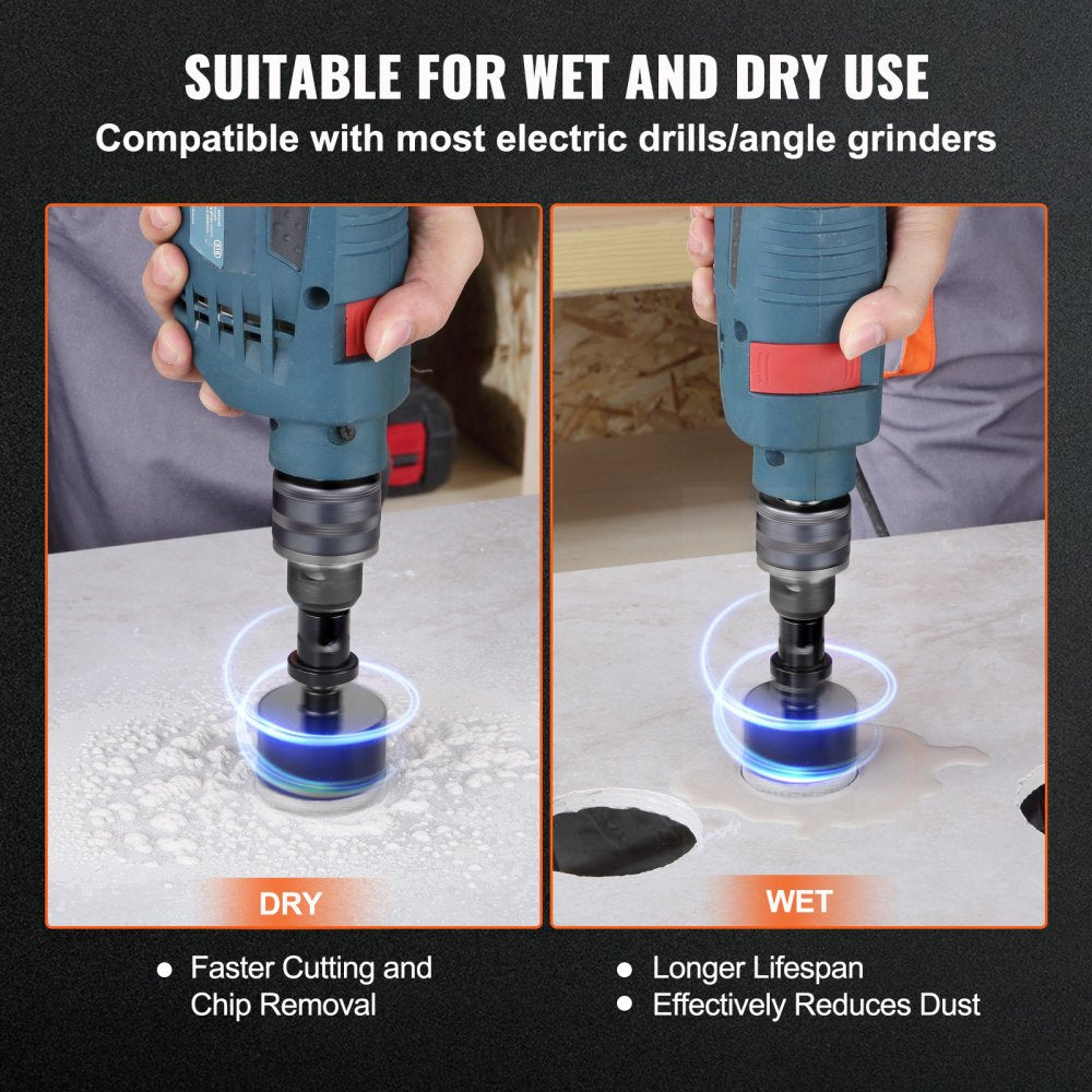 VEVOR diamantboorkronen voor nat en droog gebruik met elektrische boormachines en haakse slijpers.