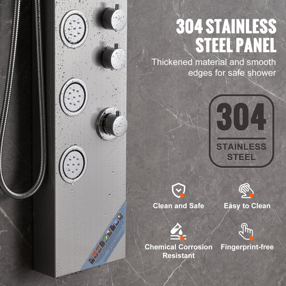 VEVOR douchekolom douchesysteem douchearmatuur, 4 douchemodi, doucheset, regenval, waterval, 5 volledige lichaamsmassagestralen en handdouche met 3 standen en 1,5 m slang, wanddoucheset van roestvrij staal