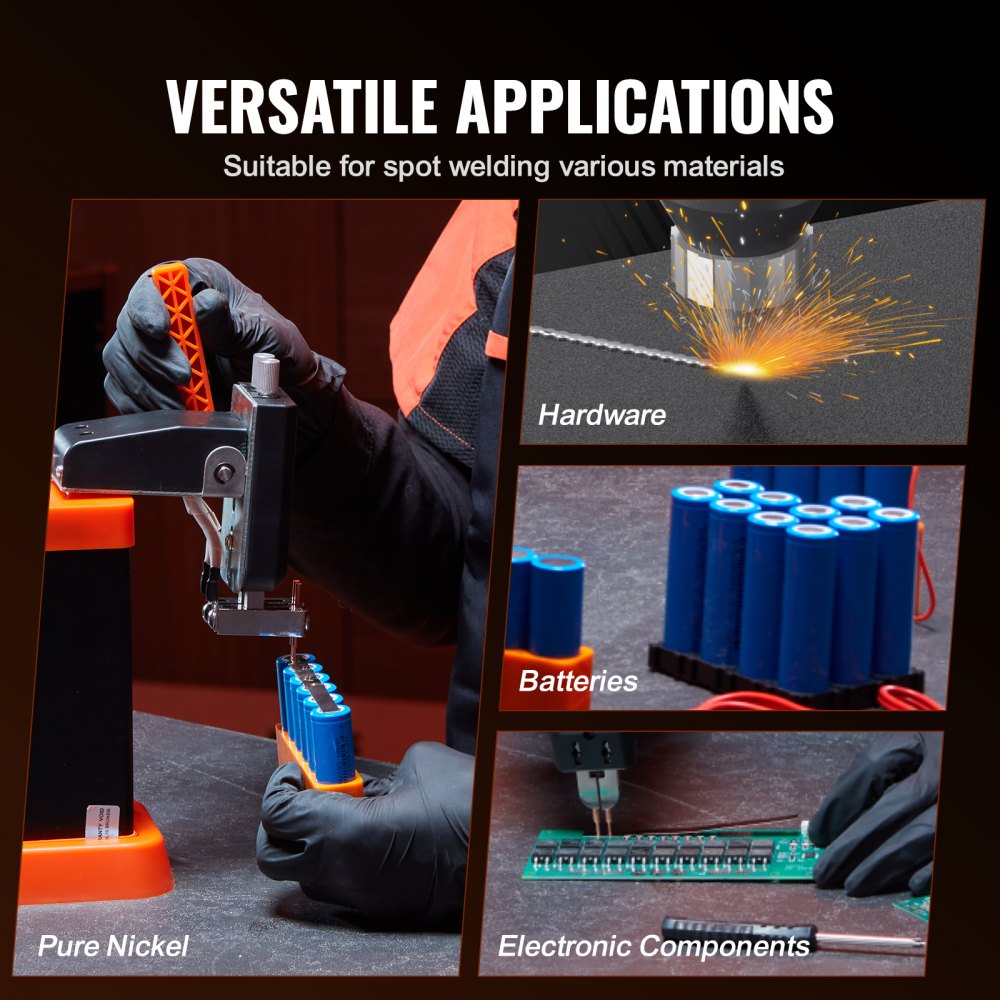 De VEVOR-pulslasmachine met condensatorenergie-opslag is geschikt voor het produceren van verschillende soorten batterijassemblages, waaronder grote lithium-ijzerfosfaat-batterijpakketten, lithium-ijzerfosfaat-batterijpakketten, batterijen voor elektrisch gereedschap, 32650-batterijen, enz.
